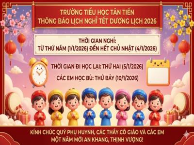 (Tiểu học Tân Tiến) TRƯỜNG TIỂU HỌC TÂN TIẾN THÔNG BÁO LỊCH NGHỈ TẾT DƯƠNG LỊCH 2026