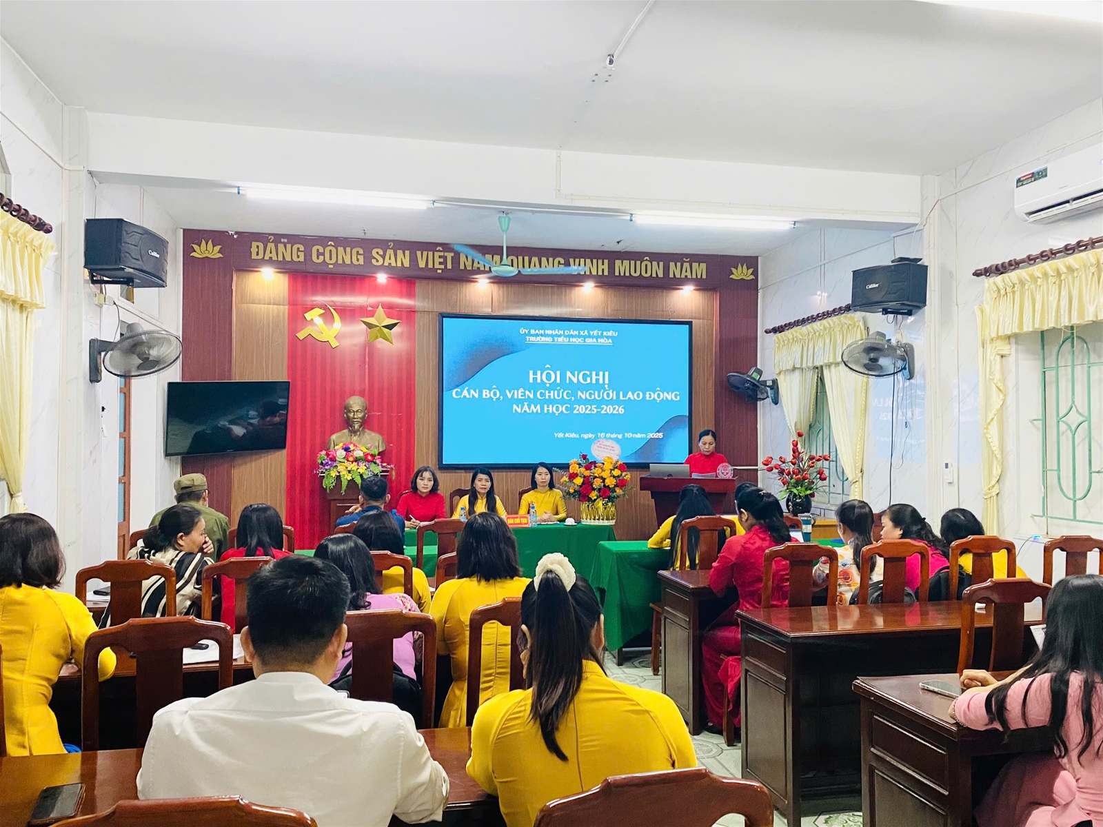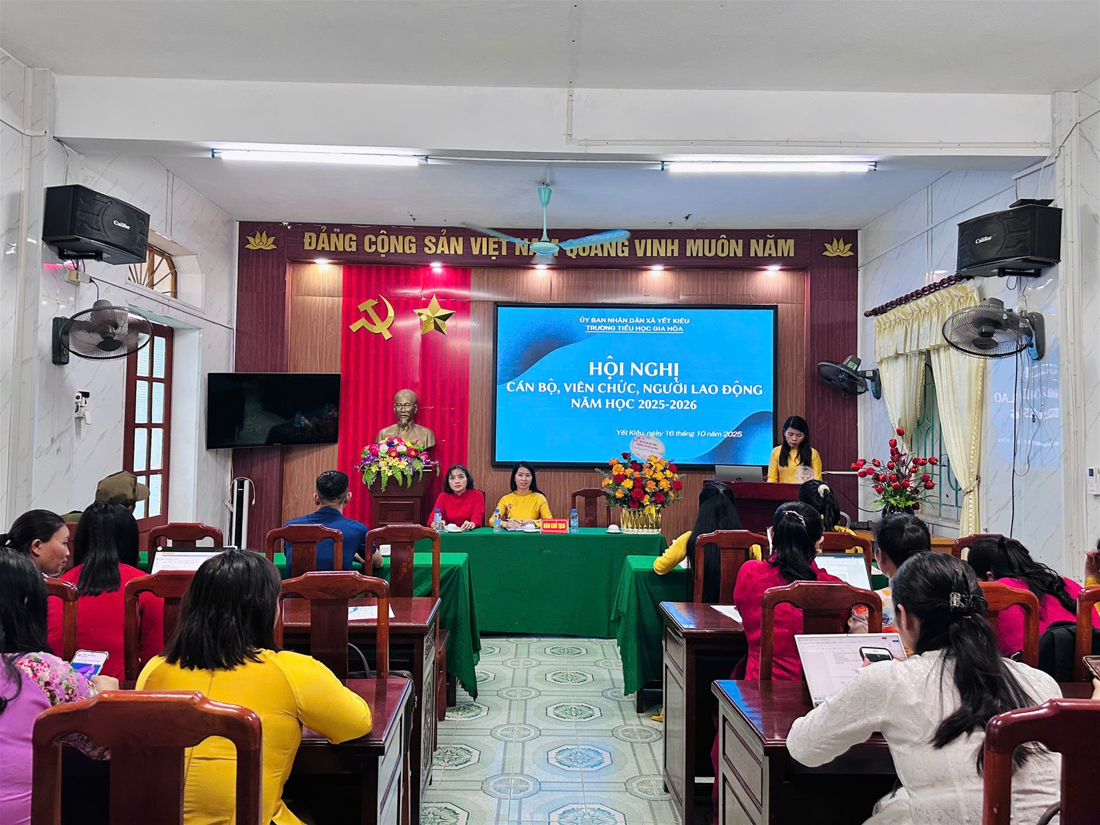 Trong không khí thi đua sôi nổi của những ngày đầu năm học mới, chiều ngày 16 tháng 10 năm 2025, Trường Tiểu học Gia Hòa đã long trọng tổ chức Hội nghị cán bộ, viên chức và người lao động năm học 2025 – 2026. Đây là hoạt động thường niên có ý nghĩa quan trọng, thể hiện tinh thần dân chủ, đoàn kết, trách nhiệm của tập thể sư phạm nhà trường trong việc thực hiện chủ trương, đường lối của Đảng, chính sách của Nhà nước và các quy định của ngành giáo dục.