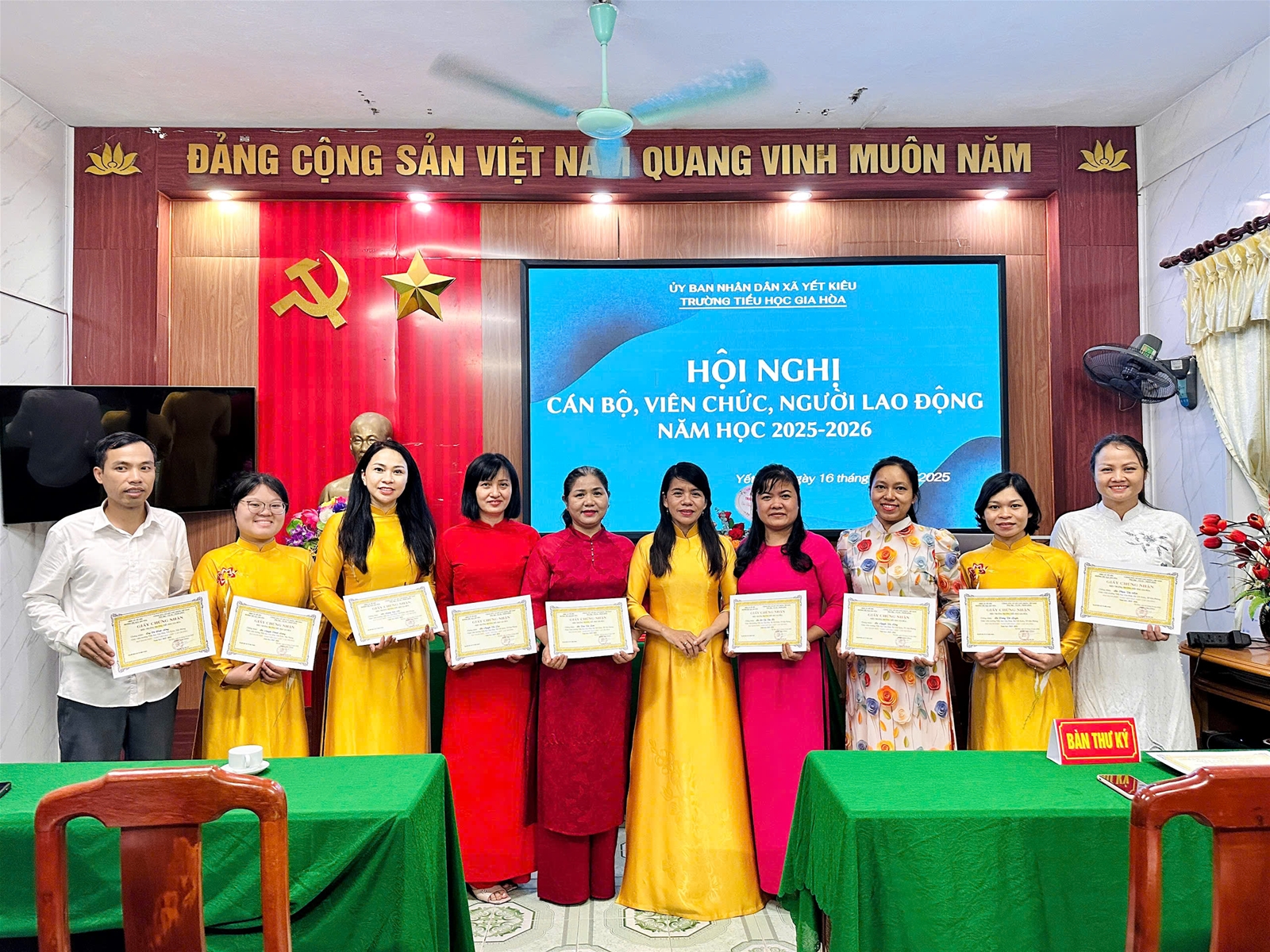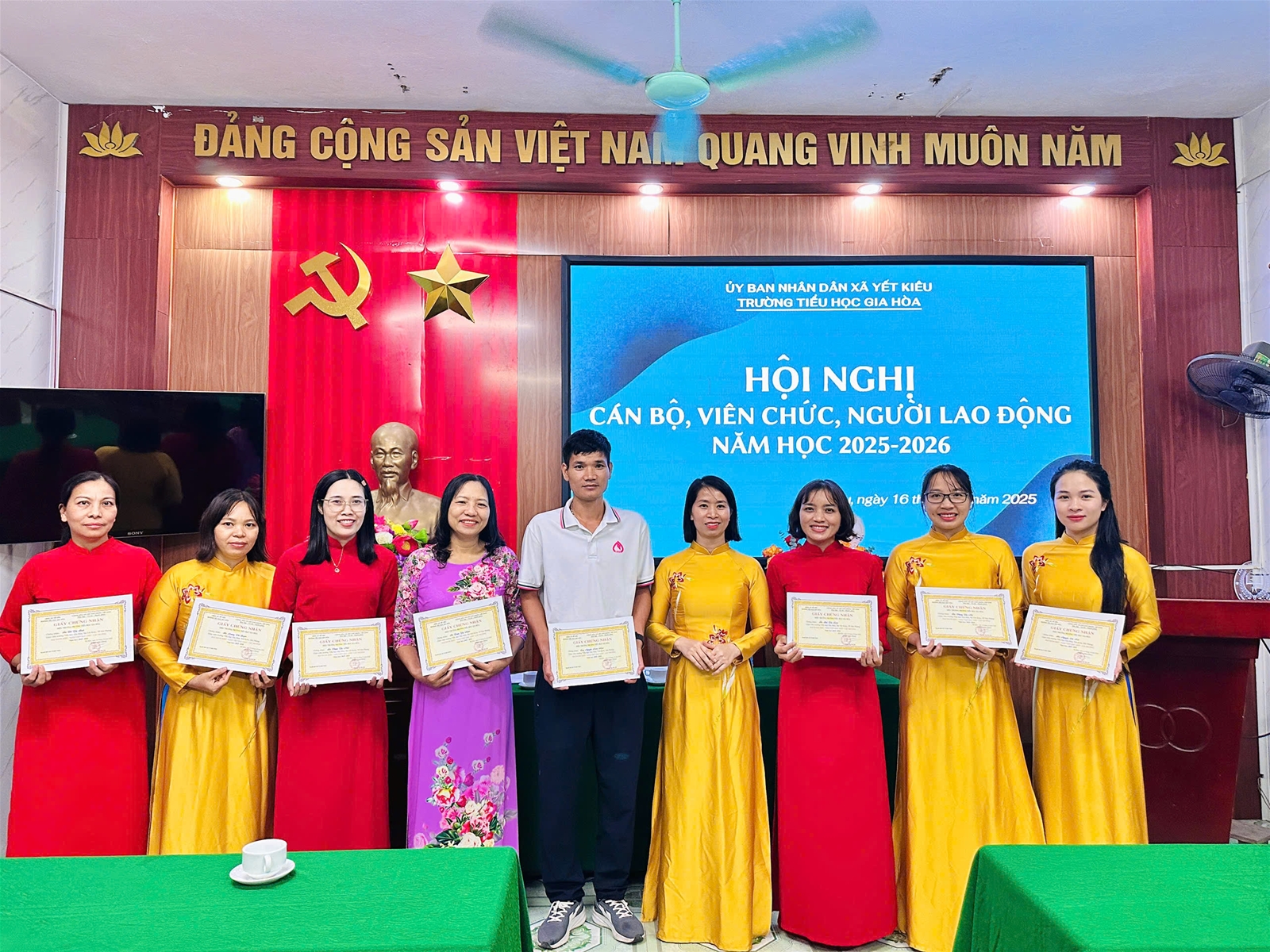 Tại Hội nghị, Ban giám hiệu Trường Tiểu học Gia Hòa đã trao Giấy chứng nhận “Giáo viên dạy giỏi cấp trường” cho các thầy cô giáo đã xuất sắc hoàn thành các nội dung thi và đạt kết quả cao trong Hội thi vừa qua. Đây không chỉ là sự ghi nhận xứng đáng cho tinh thần trách nhiệm, lòng yêu nghề và năng lực chuyên môn của mỗi giáo viên, mà còn là nguồn động viên to lớn khích lệ toàn thể đội ngũ tiếp tục nỗ lực đổi mới phương pháp giảng dạy, nâng cao chất lượng giáo dục của nhà trường. Những tấm gương tiêu biểu ấy góp phần lan tỏa phong trào thi đua “Dạy tốt – Học tốt”, xây dựng Trường Tiểu học Gia Hòa ngày càng vững mạnh và phát triển bền vững.
