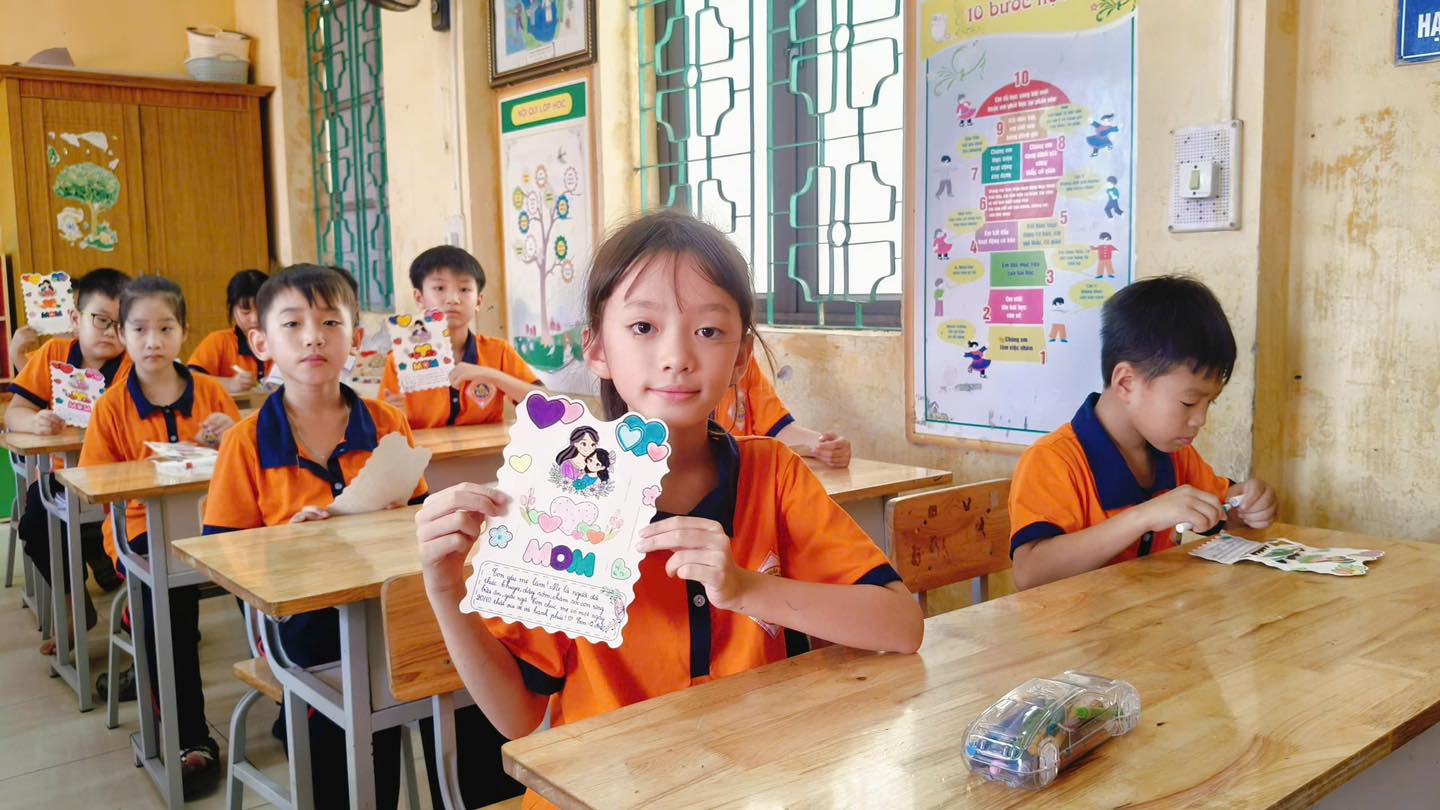 Hưởng ứng ngày đặc biệt này, các thầy cô giáo đã hướng dẫn học sinh tham gia hoạt động làm thiệp chúc mừng bà, mẹ và cô giáo – những người phụ nữ thân yêu luôn dành cho các em tình yêu thương, sự chăm sóc và dạy dỗ mỗi ngày. Với đôi bàn tay nhỏ nhắn, khéo léo, các em học sinh đã sáng tạo nên những tấm thiệp xinh xắn, chứa đựng biết bao tình cảm chân thành, những lời chúc ngọt ngào gửi đến những người phụ nữ mà mình yêu quý nhất.