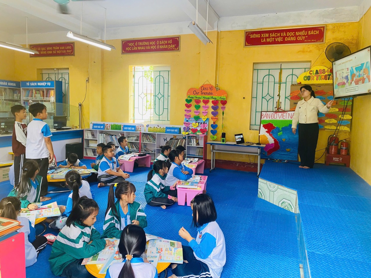 Tiết học không chỉ giúp học sinh mở rộng vốn từ vựng, rèn luyện kỹ năng giao tiếp tiếng Anh mà còn góp phần phát triển năng lực ngôn ngữ, tư duy sáng tạo và sự tự tin trong học tập. Đặc biệt, việc tổ chức dạy học tại thư viện đã mang lại một không gian học tập mới mẻ, khơi dậy hứng thú, giúp học sinh thêm yêu thích môn Tiếng Anh.