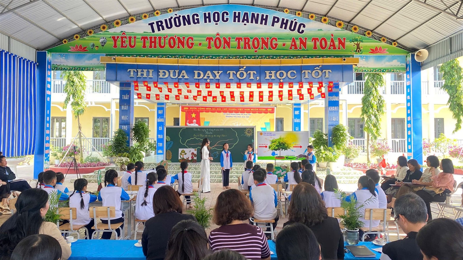 Các thầy cô giáo đã trực tiếp dự giờ tiết dạy do cô Hoàng Thị Phương - giáo viên Trường Tiểu học Gia Tân dạy minh hoạ chuyên đề, bài 15: Thực vật cần gì để sống (Khoa học lớp 4). Đây là hoạt động thiết thực nhằm đổi mới phương pháp dạy học, đáp ứng yêu cầu chuyển đổi số trong giáo dục theo định hướng của ngành. Trong tiết học minh họa, giáo viên đã vận dụng linh hoạt nhiều công cụ AI như: Suno AI, Canva AI, video AI mô phỏng… để hỗ trợ học sinh khám phá kiến thức khoa học thông qua các hoạt động học tập trực quan, sinh động và giàu trải nghiệm.