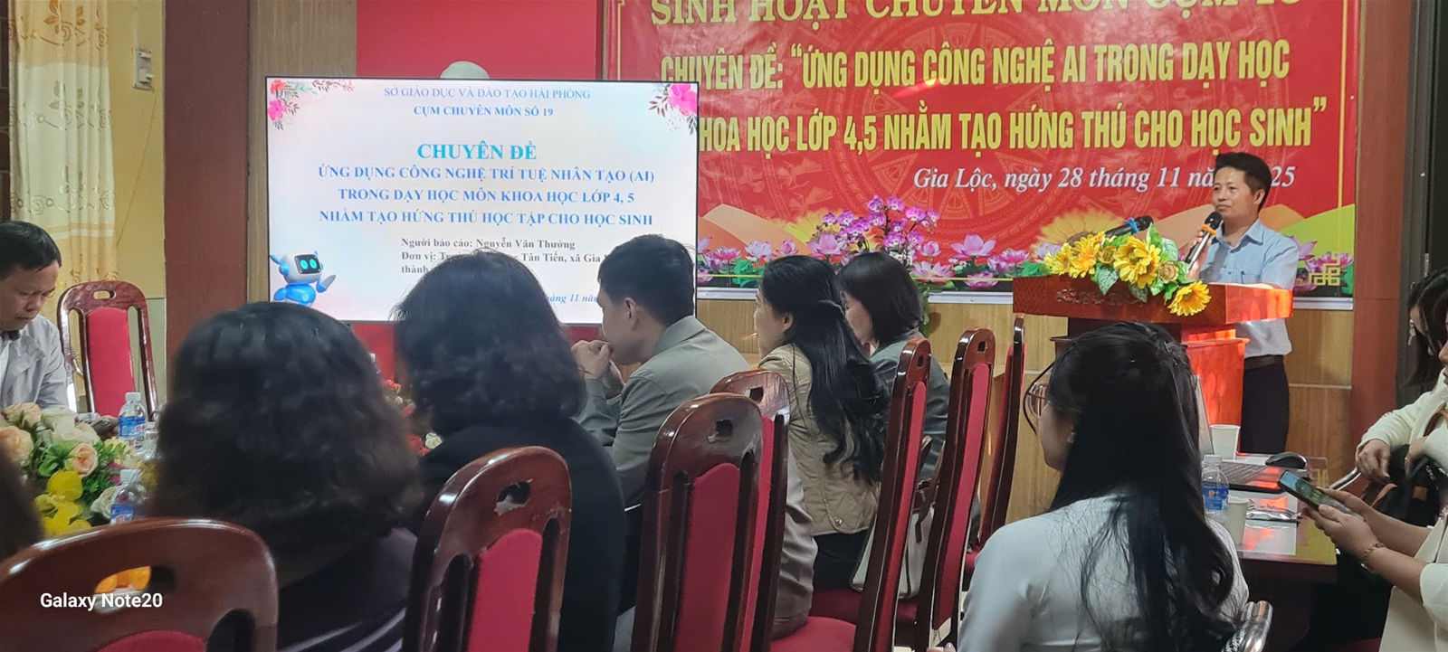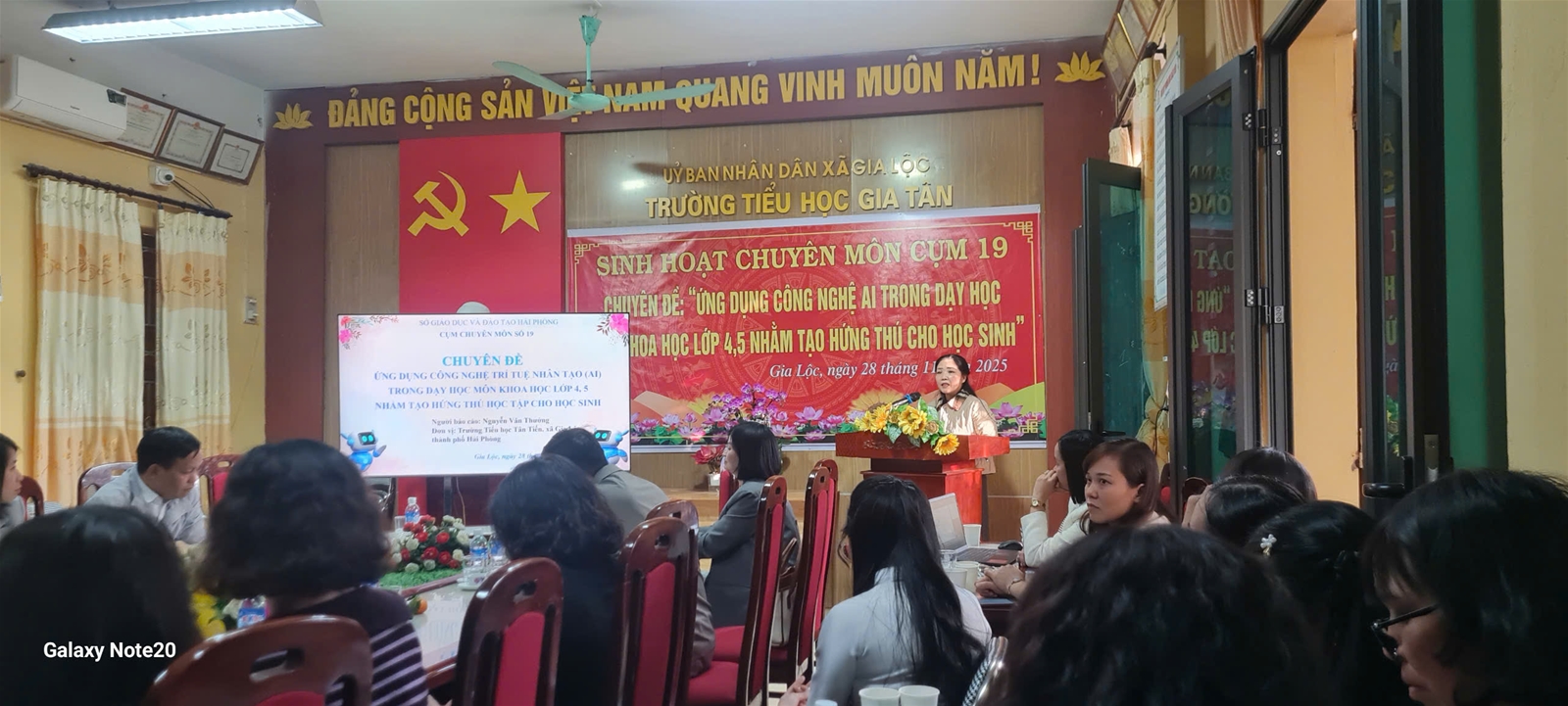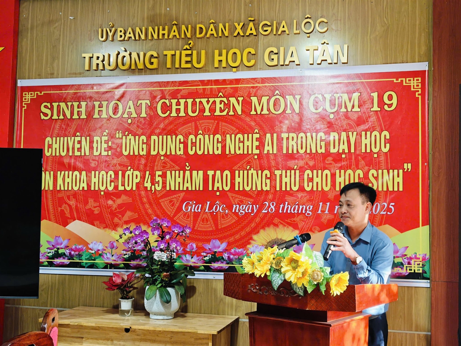 Thực hiện Kế hoạch nhiệm vụ năm học và Kế hoạch chuyên đề Cụm chuyên môn số 19 năm học 2025-2026, chiều nay ngày 28/11/2025, ba trường: trường Tiểu học Gia Tân, trường Tiểu học Tân Tiến và trường Tiểu học Gia Khánh đã phối hợp tổ chức buổi sinh hoạt chuyên đề “Ứng dụng công nghệ AI trong dạy học môn Khoa học lớp 4,5 nhằm tạo hứng thú học tập cho học sinh”.