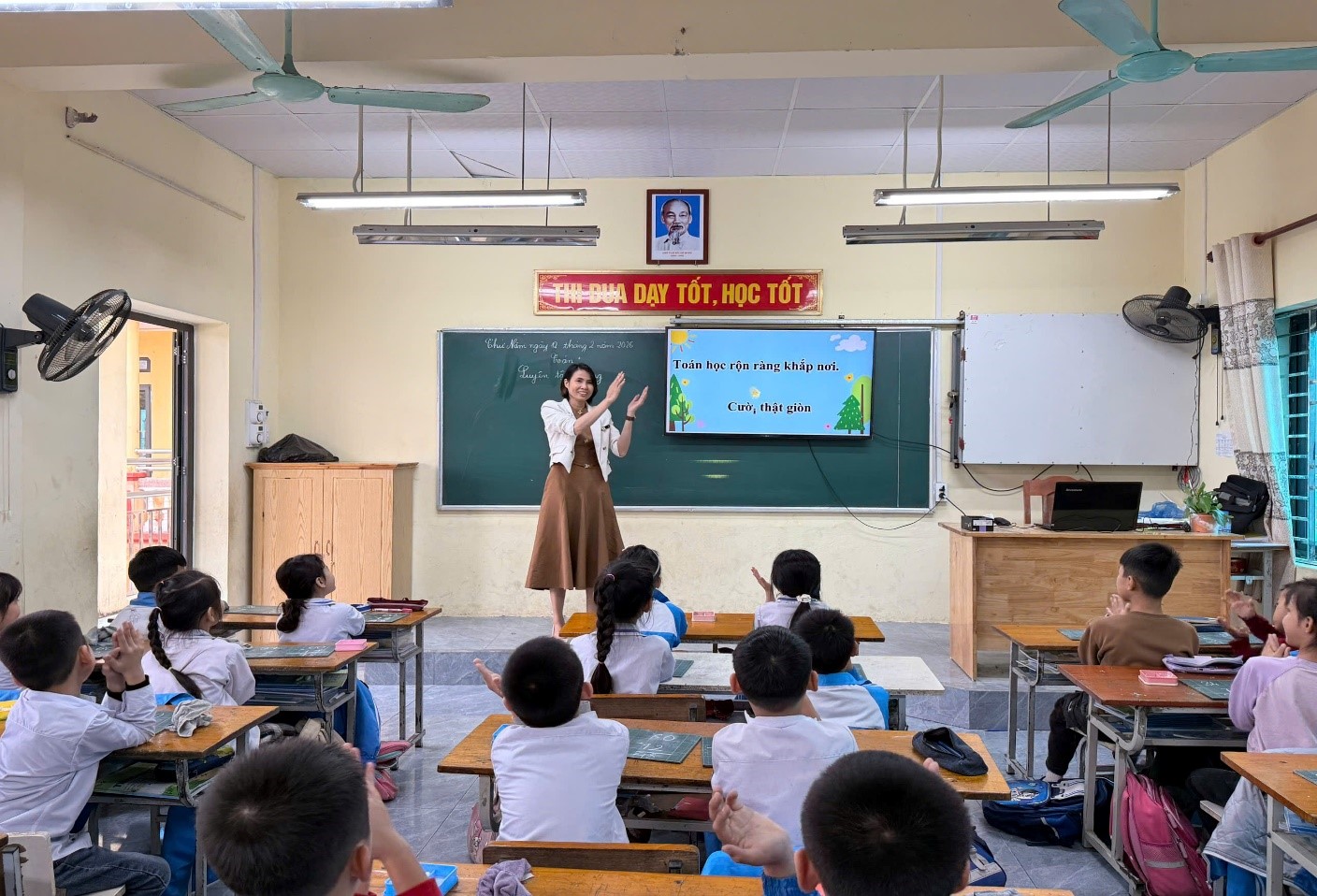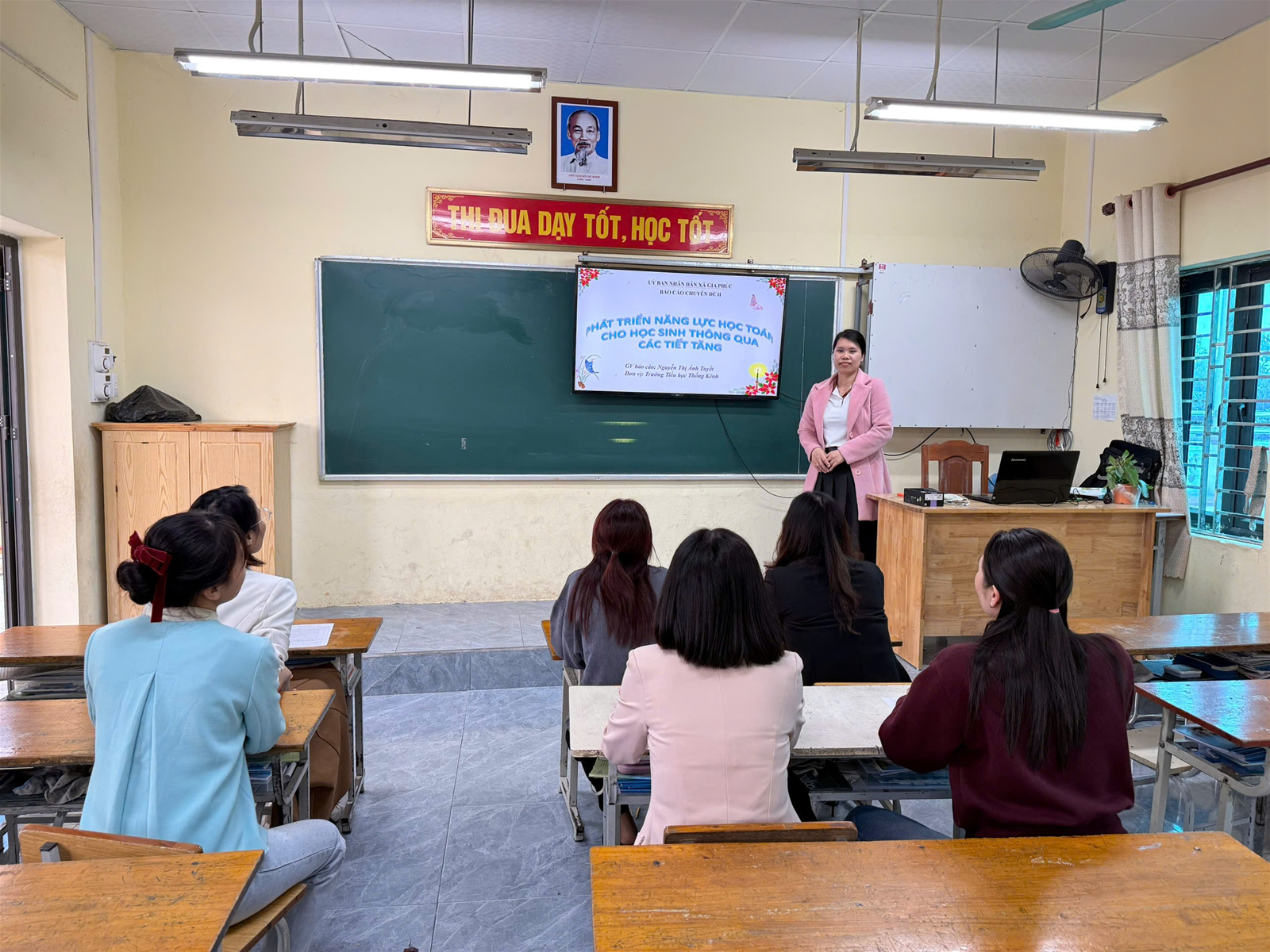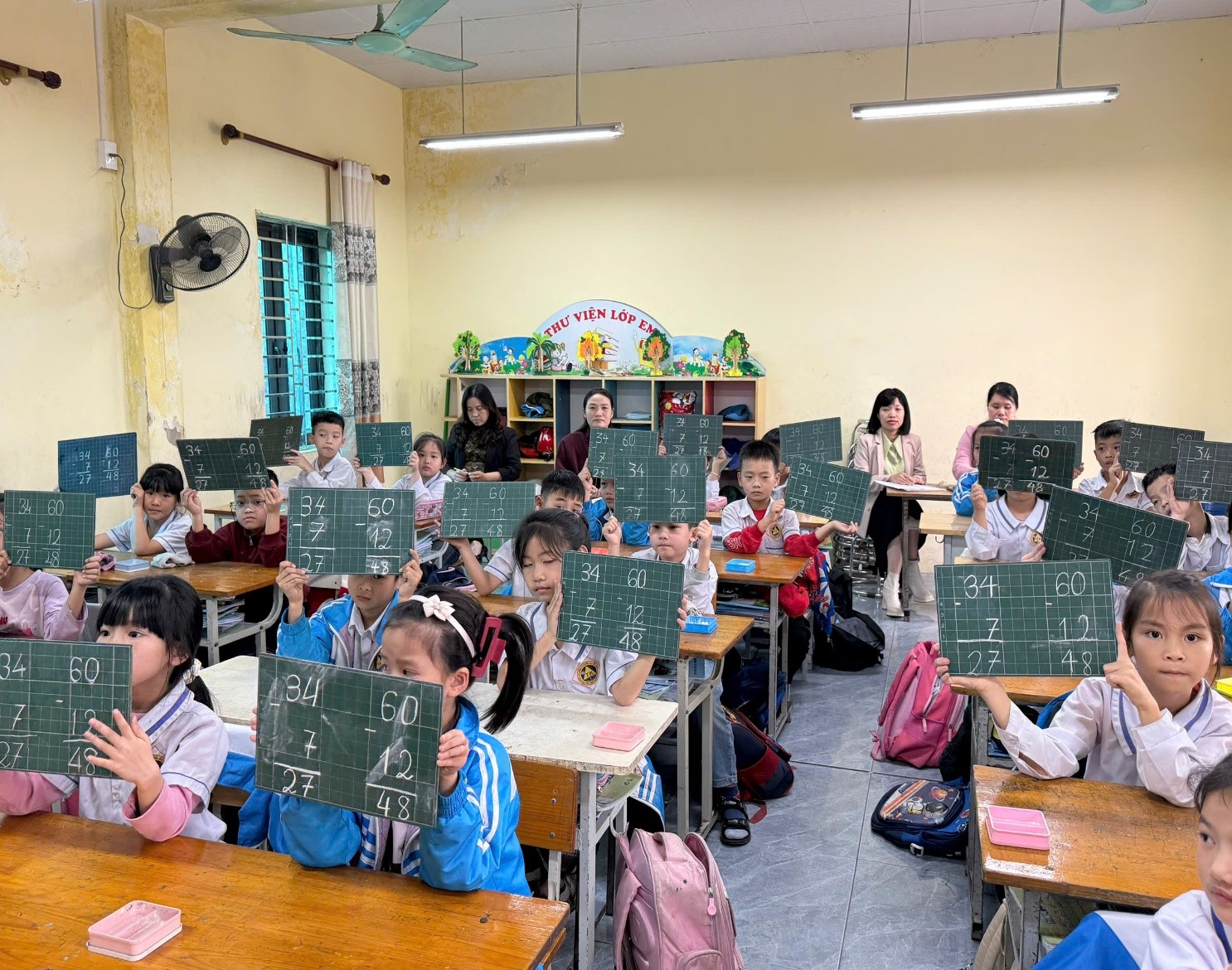 Trong tiết áp dụng chuyên đề, cô giáo Nguyễn Thị Thủy đã minh họa tiết dạy tăng cường theo hướng phát triển phẩm chất, năng lực học sinh. Các hoạt động được tổ chức linh hoạt, phù hợp từng đối tượng, chú trọng rèn kỹ năng tính toán, tư duy logic và khả năng giải quyết vấn đề. Học sinh được tham gia trò chơi học tập, thảo luận nhóm, trình bày và chia sẻ cách làm, tạo không khí học tập sôi nổi, tích cực.