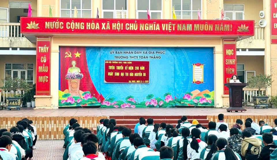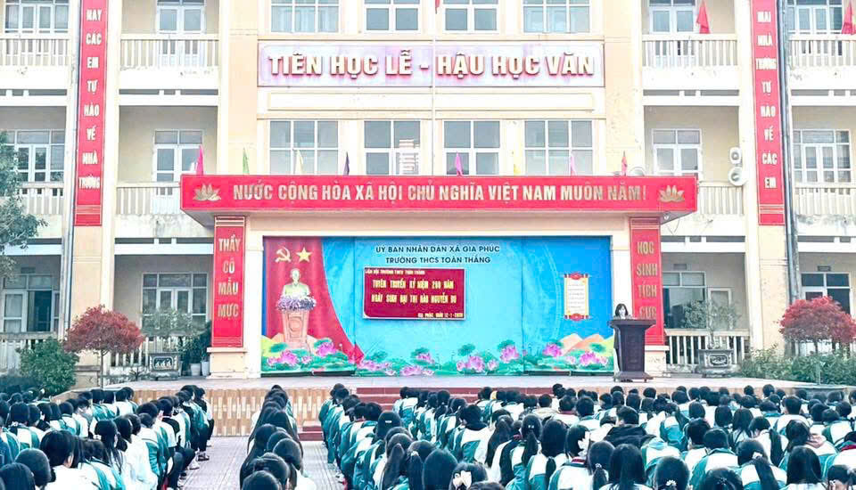 Nhân dịp tuyên truyền về đại thi hào Nguyễn Du, trường THCS Toàn Thắng mong muốn giáo dục học sinh ý thức trân trọng, gìn giữ và phát huy các giá trị văn hóa truyền thống của dân tộc. Qua việc học tập và tìm hiểu về ông các em học sinh thêm yêu tiếng Việt, yêu văn học nước nhà, biết sống nhân ái, giàu lòng yêu thương và có trách nhiệm với bản thân, gia đình và xã hội.
