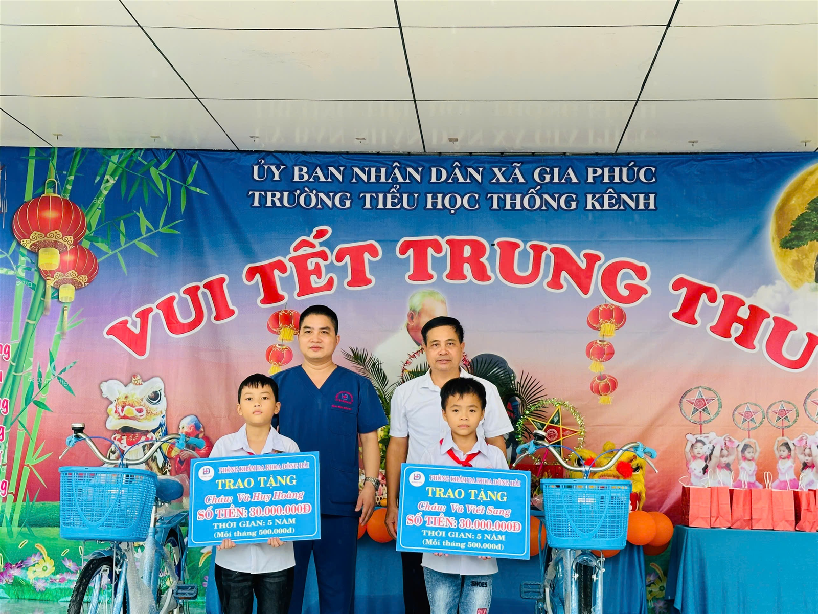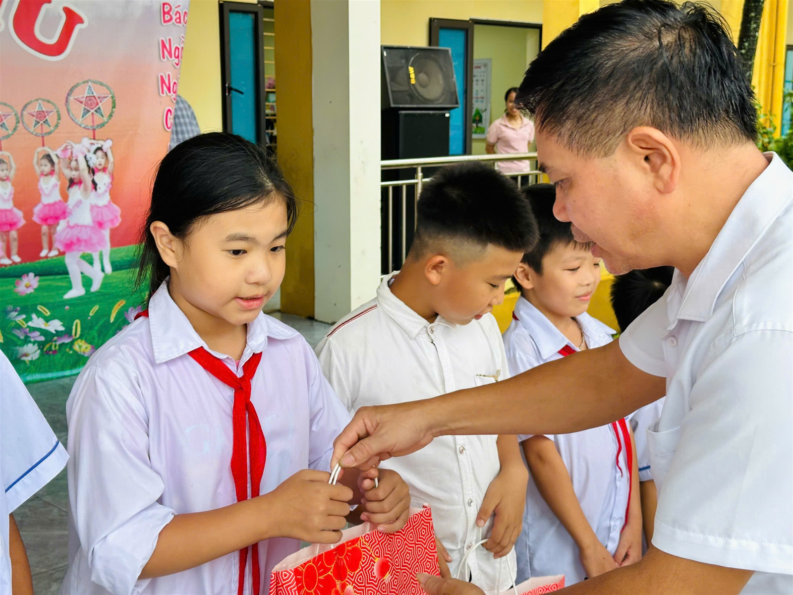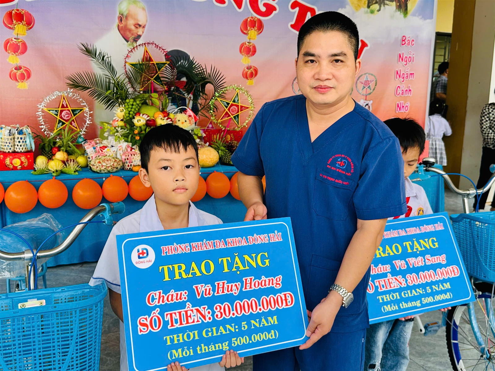 Cũng trong dịp này, với tấm lòng nhân ái và sự quan tâm đến các em học sinh có hoàn cảnh khó khăn vươn lên trong học tập, giám đốc Phòng khám đa khoa Đông Hải xã Tân Kỳ, thành phố Hải Phòng, ông Trịnh Quốc Toản đã trao tặng 2 suất quà đặc biệt, mỗi suất gồm 1 chiếc xe đạp và 30 triệu đồng trong 05 năm (mỗi tháng 5 trăm nghìn đồng), cho em Vũ Viết Sang - lớp 5C và em Vũ Huy Hoàng - lớp 4C. Đây là nguồn động viên cả về vật chất và tinh thần để các em vượt qua khó khăn, học tập chăm ngoan.