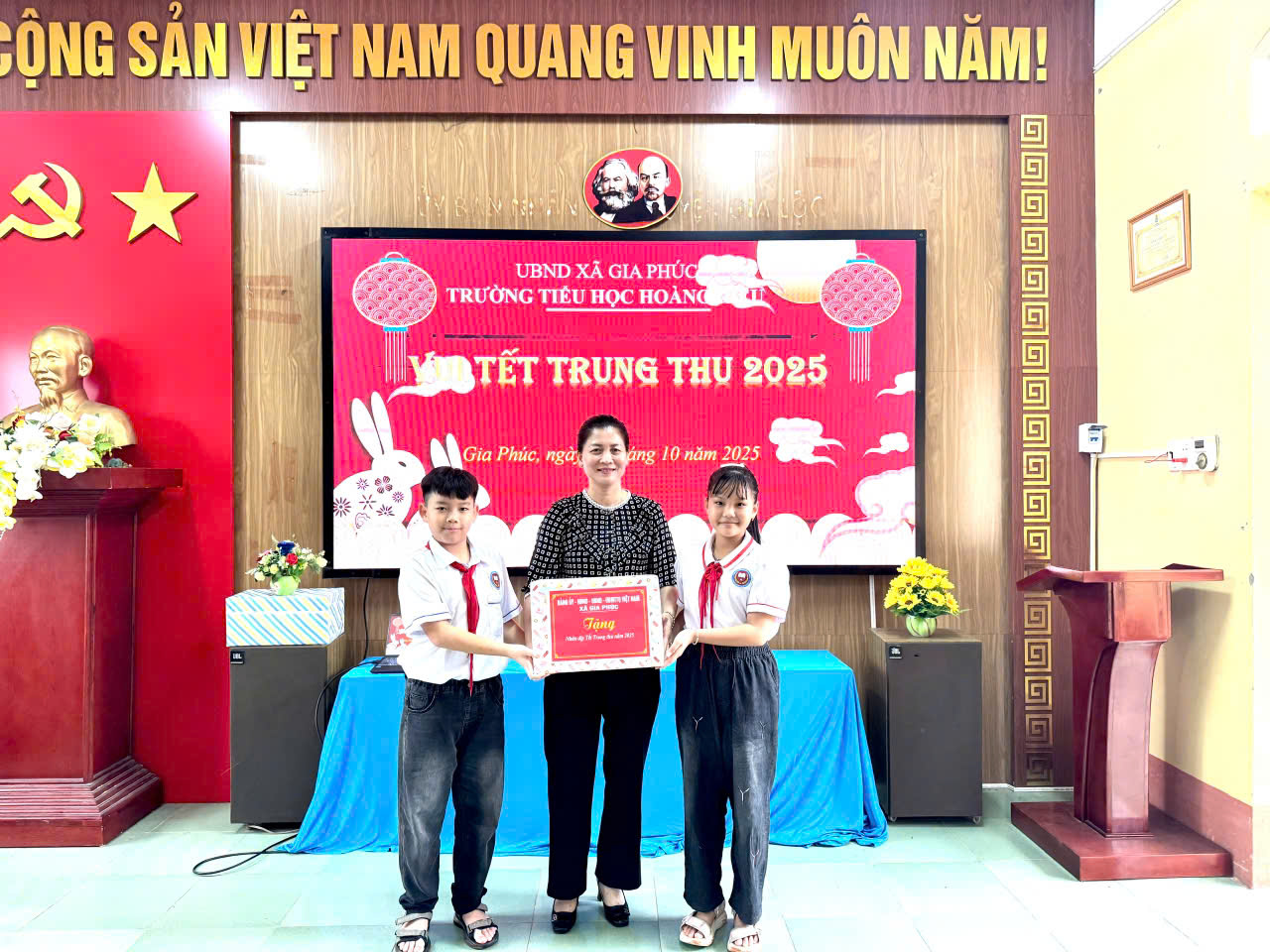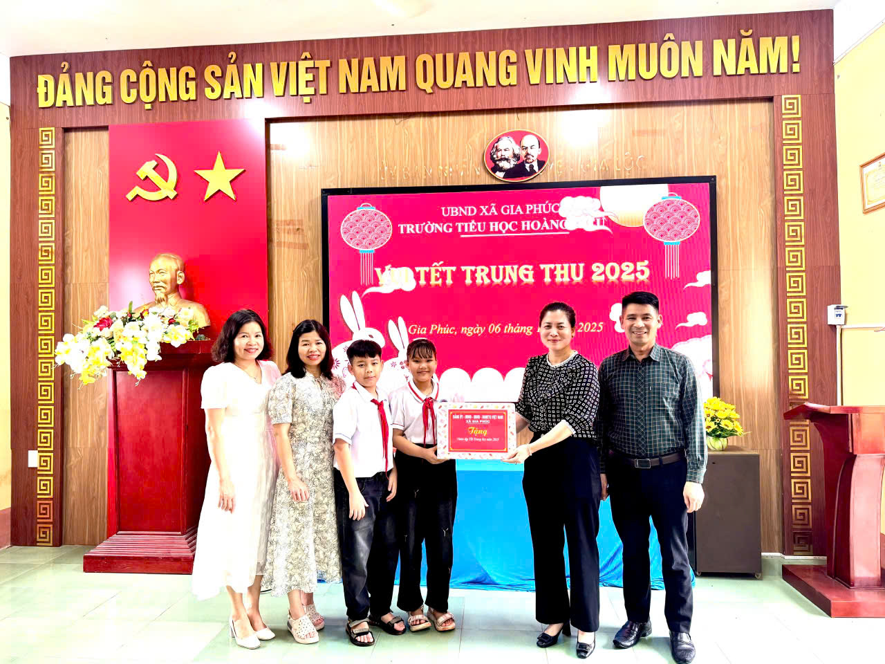 Mặt trận Tổ quốc xã Gia Phúc tặng quà cho các em HS vượt khó.