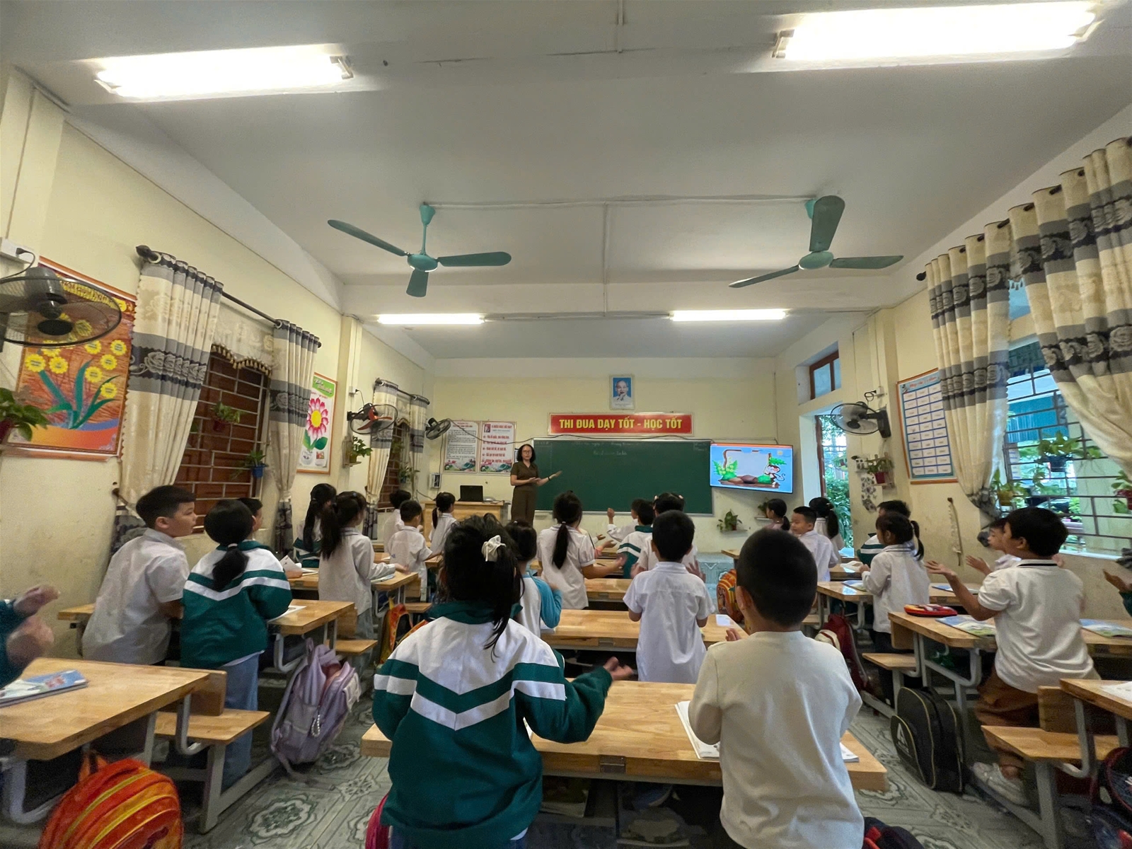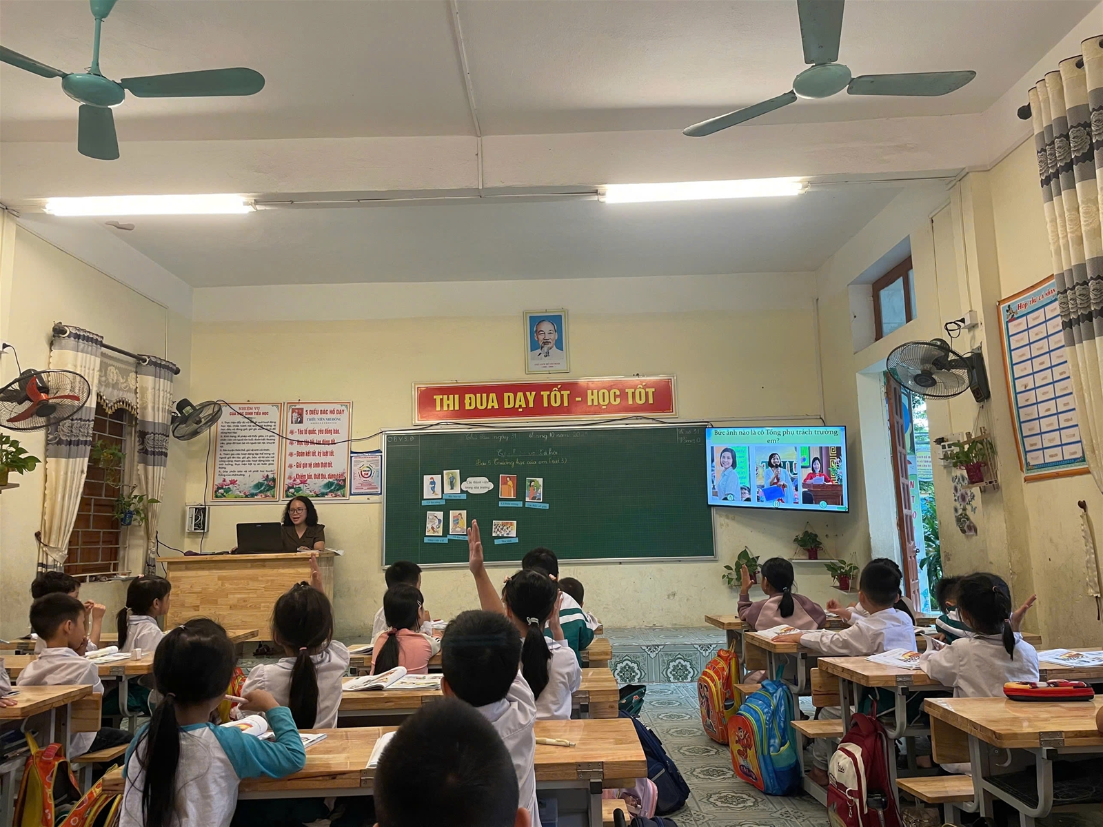Tiết học được thực hiện theo đúng ý tưởng của chuyên đề, làm rõ thêm nội dung chuyên đề. Đó là vận dụng linh hoạt các phương pháp, hình thức tổ chức dạy học một cách linh hoạt, sáng tạo, phù hợp với lứa tuổi học sinh lớp 1; ứng dụng công nghệ AI có chọn lọc, không lạm dụng, để tạo hưng phấn cho HS và hỗ trợ hoạt động của GV có hiệu quả. Với mục tiêu lấy HS làm trung tâm, cô giáo và tạo hình AI đã khéo léo dẫn dắt, định hướng, tạo động lực cho học sinh học tập. Trong tiết dạy minh họa, cô và trò đã cùng khám phá trường học của mình qua nhiều hoạt động trải nghiệm thú vị: quan sát, thảo luận nhóm, trò chơi học tập… Tiết học diễn ra nhẹ nhàng, hiệu quả, học sinh hứng thú, sôi nổi tham gia các hoạt động, tự khám phá kiến thức. Không chỉ khám phá để phát hiện, tiếp thu kiến thức mà các em còn được rèn luyện kỹ năng giao tiếp, hợp tác và bồi dưỡng tình yêu thương mọi người.