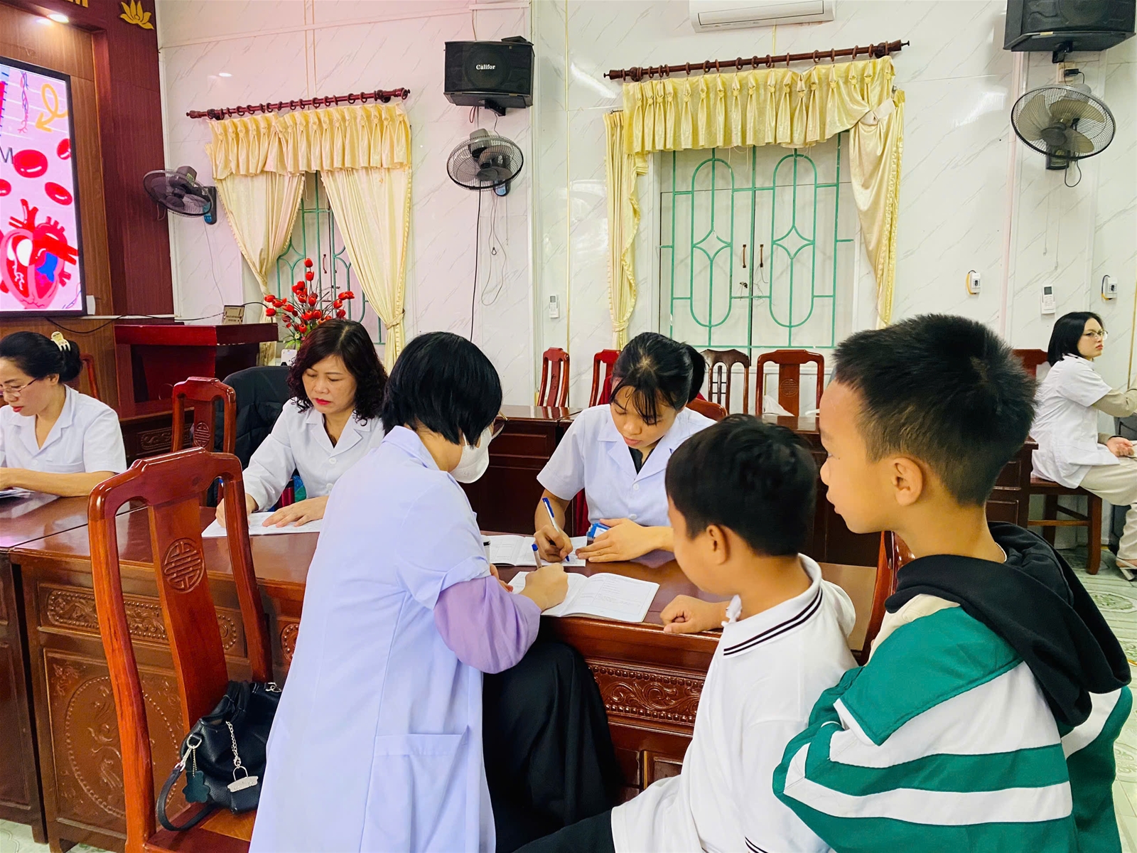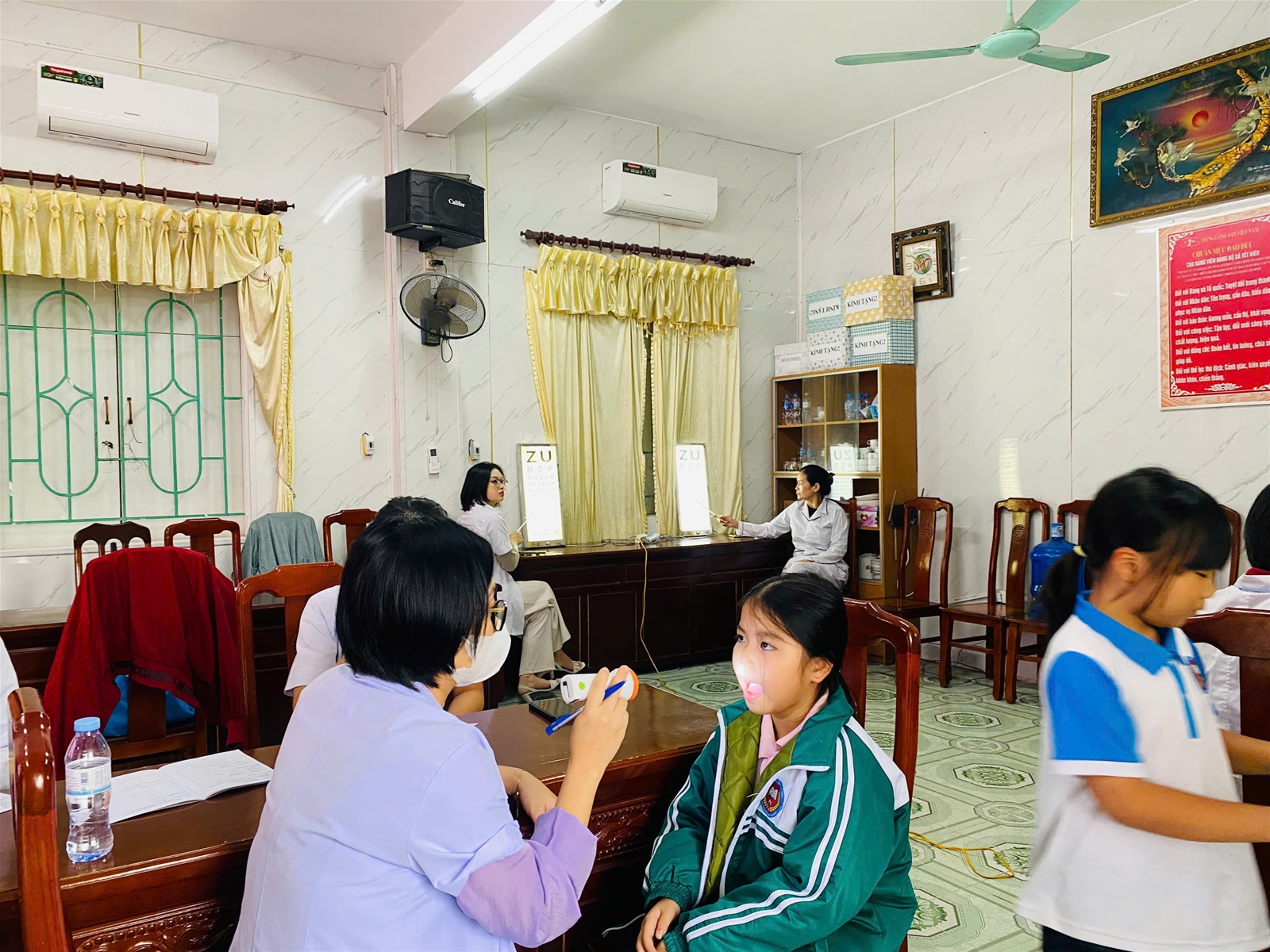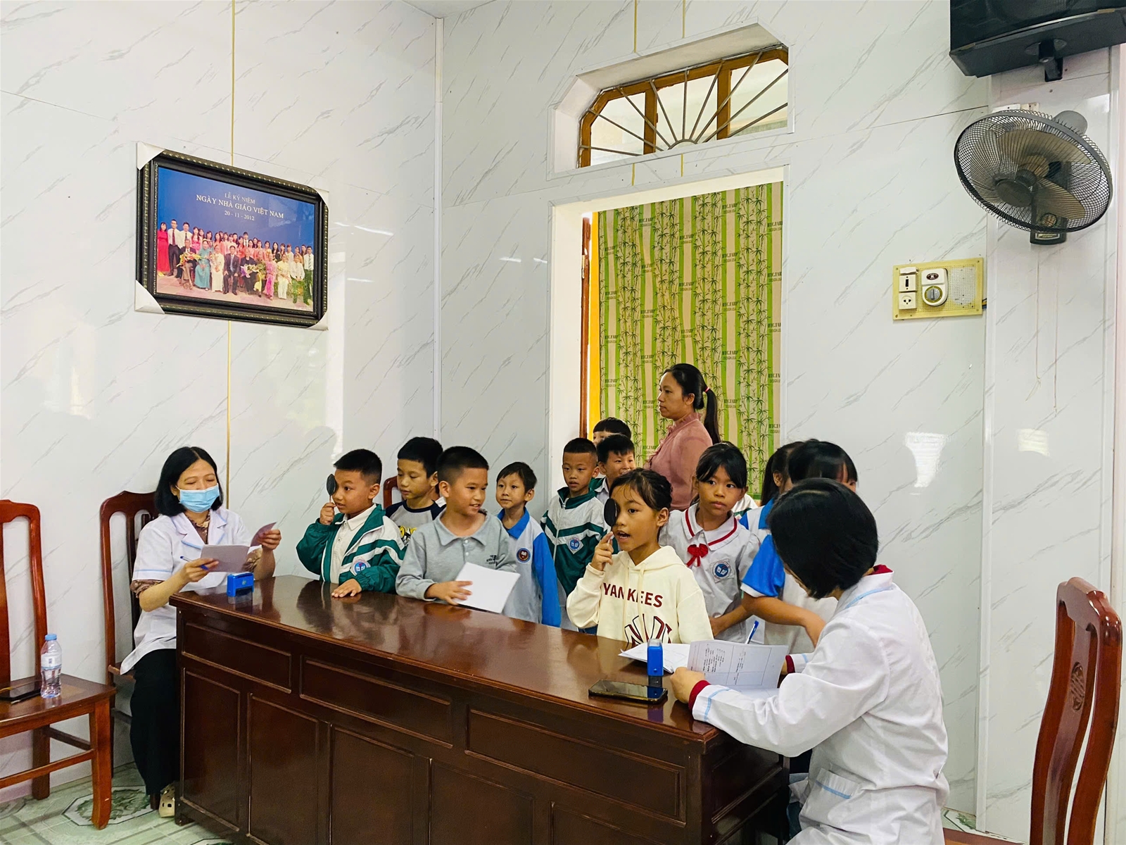 Đoàn y bác sĩ của Trung tâm Y tế Gia Lộc làm việc nghiêm túc, tận tình, hướng dẫn học sinh thực hiện các bước kiểm tra khoa học, đúng quy trình. Các em học sinh hào hứng, hợp tác tốt; cán bộ, giáo viên nhà trường cũng tích cực hỗ trợ để buổi khám diễn ra nhanh gọn, an toàn và hiệu quả.