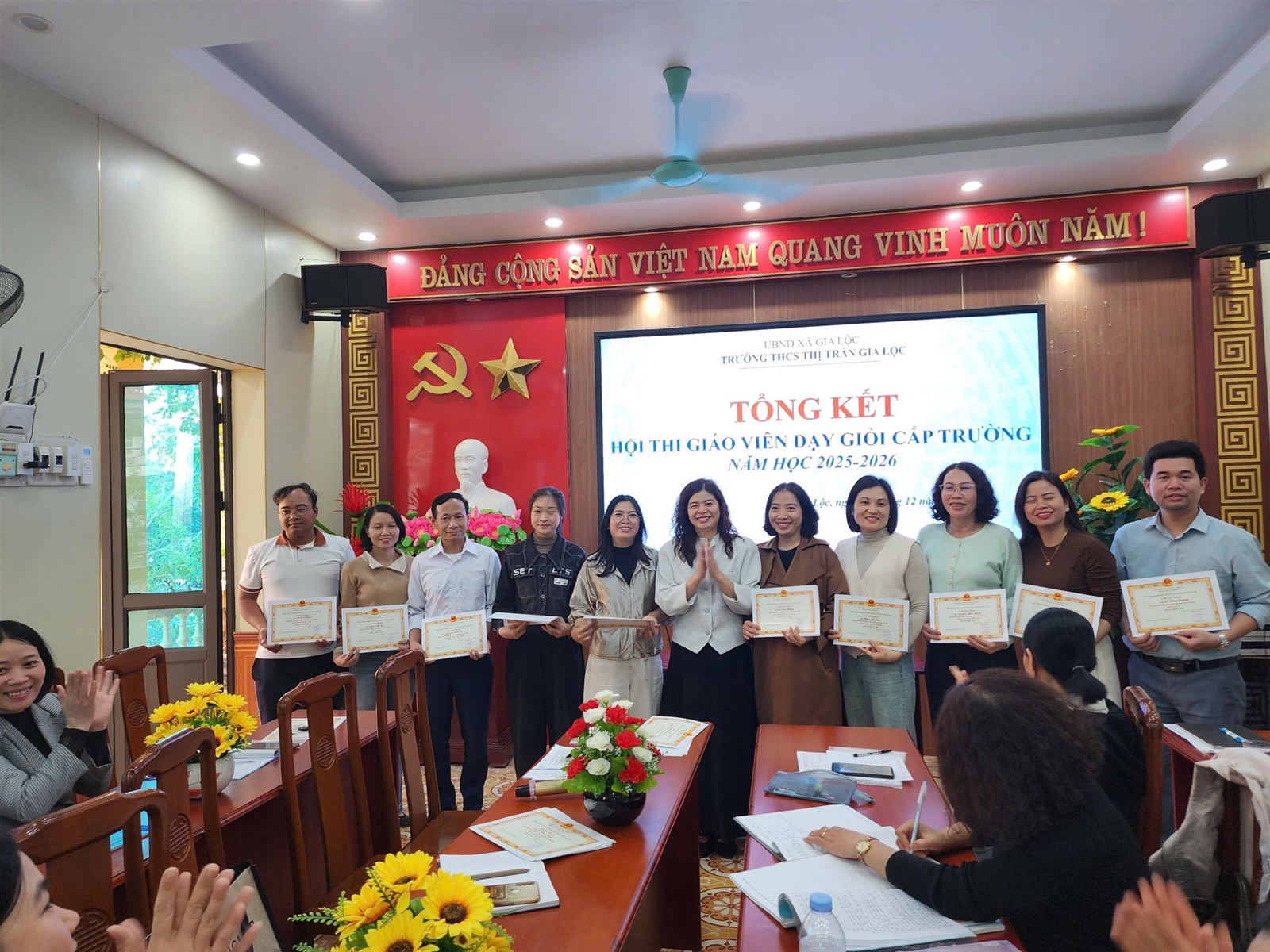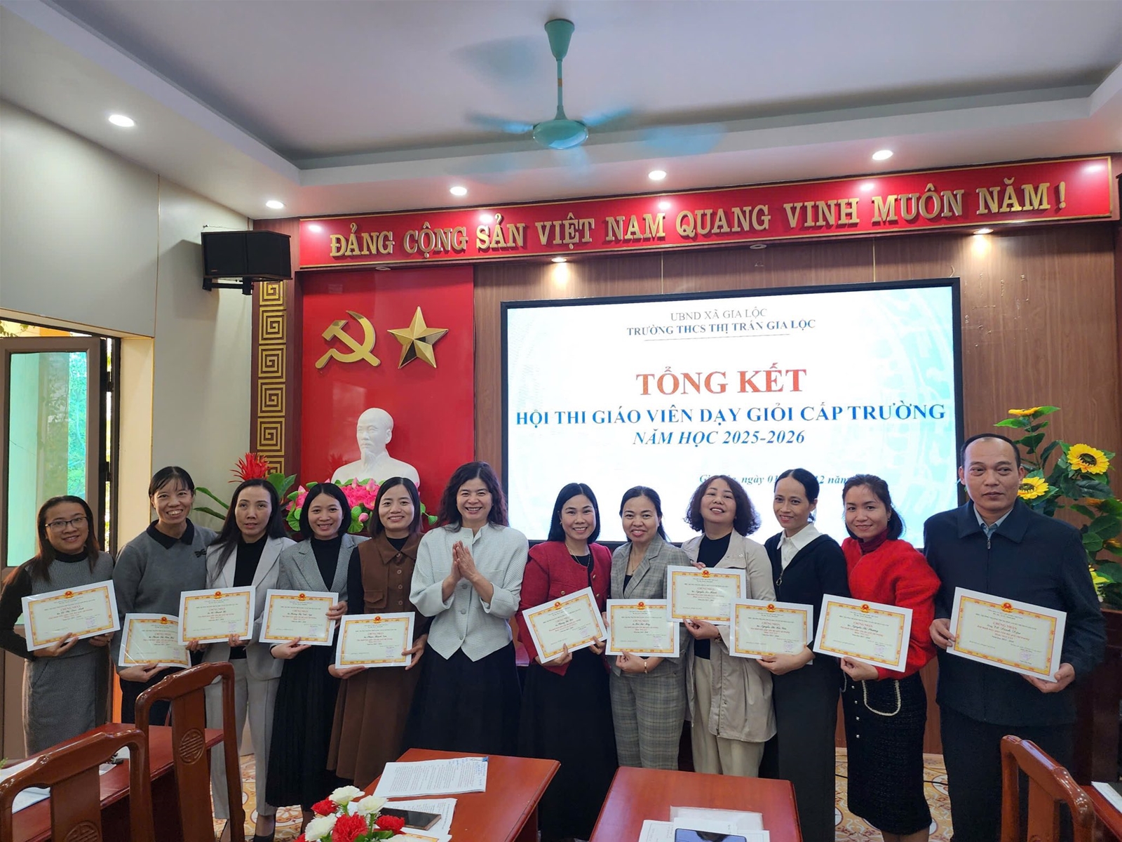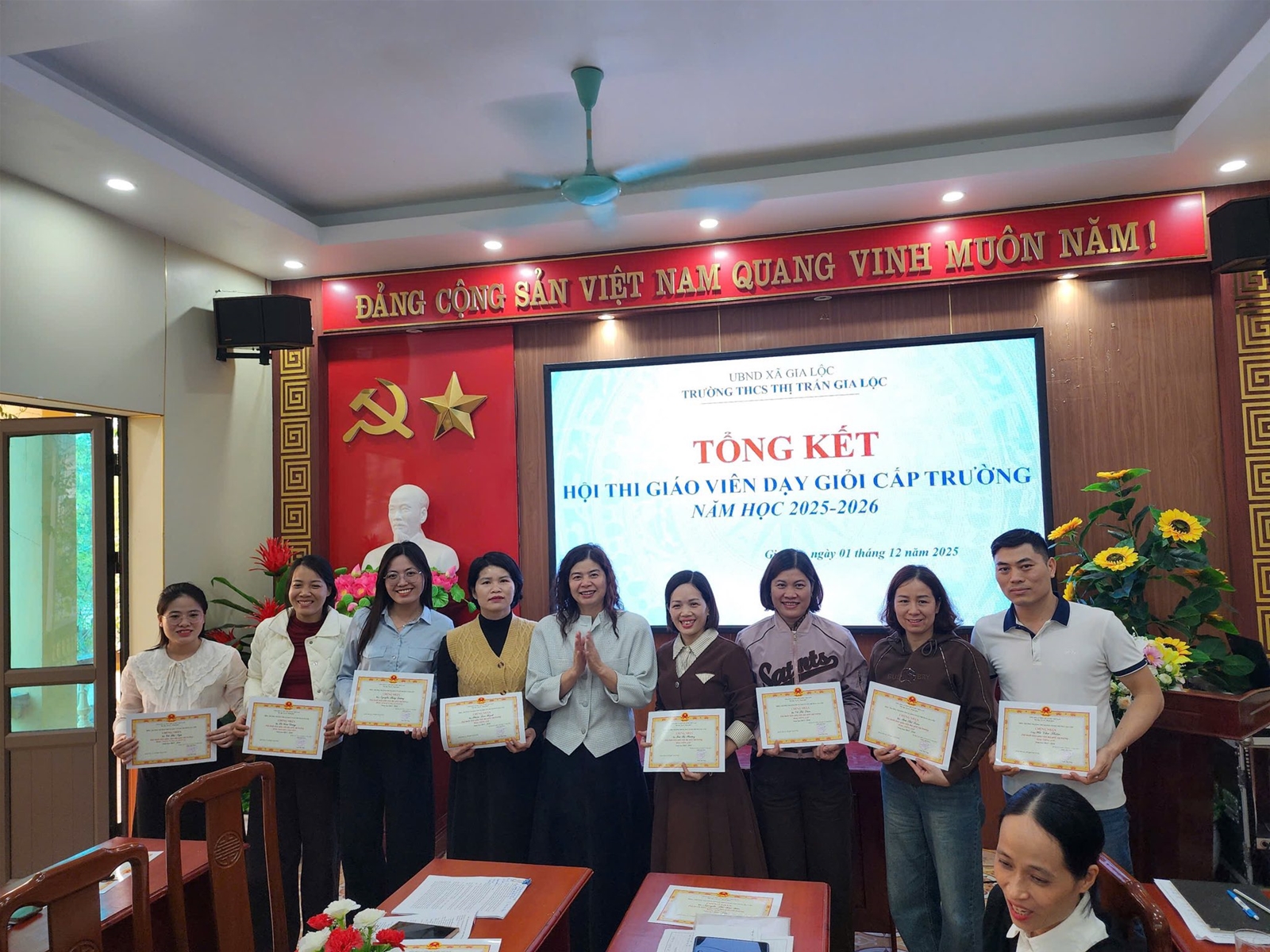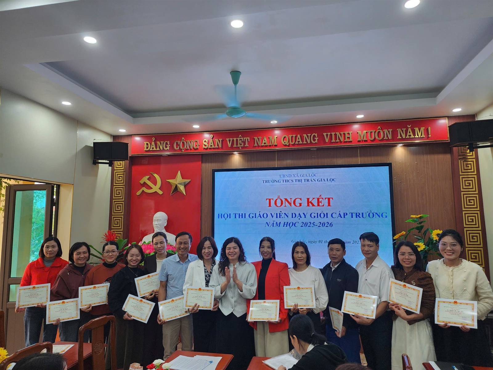 Căn cứ vào kết quả các phần thi của cá nhân, Ban Tổ chức Hội thi Giáo viên giỏi Trường THCS Thị trấn Gia Lộc đã xét công nhận 46/46 giáo viên dự thi đều được công nhận danh hiệu Giáo viên dạy giỏi cấp trường năm học 2025 -2026.