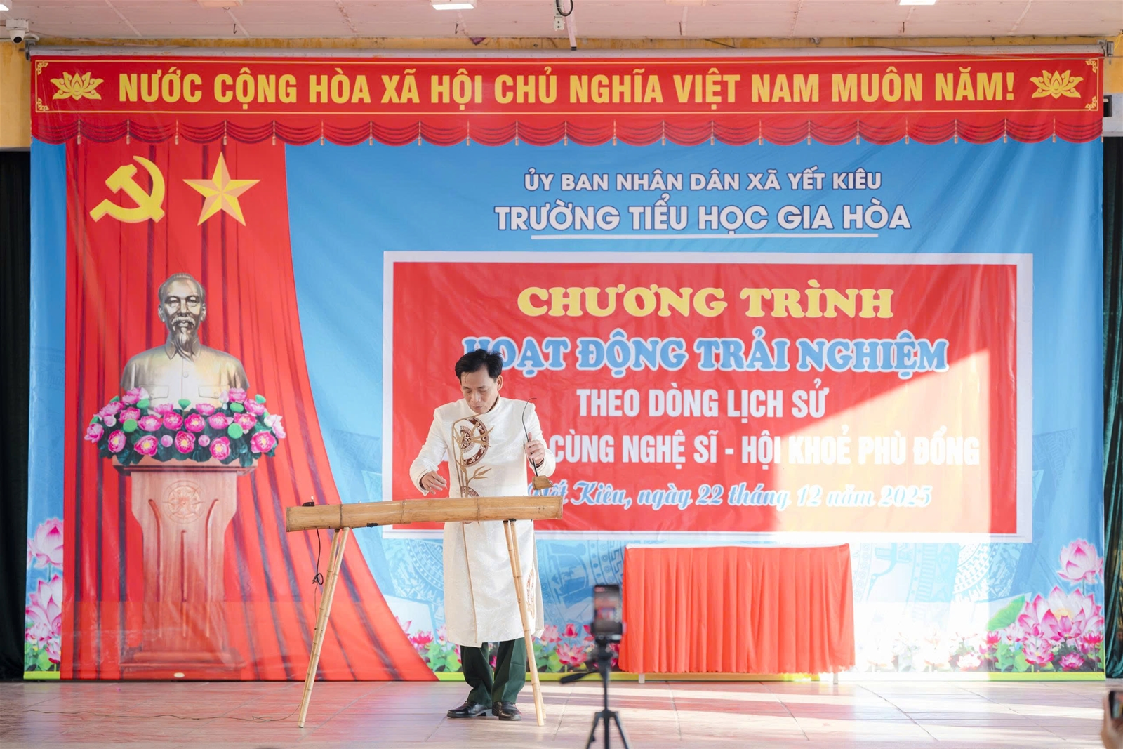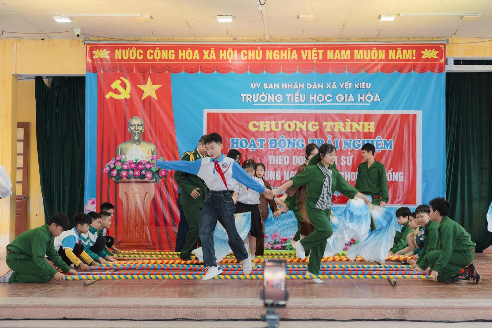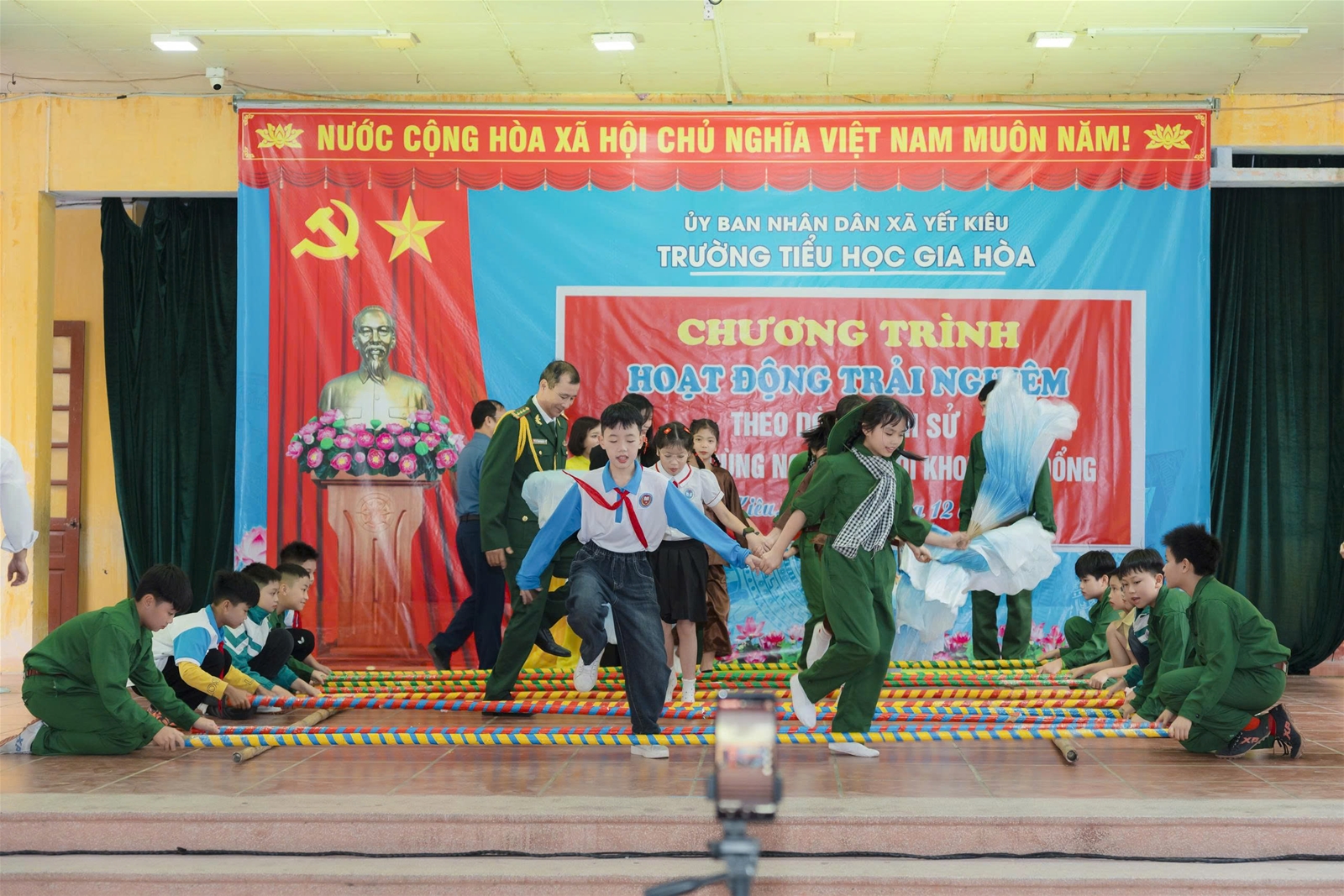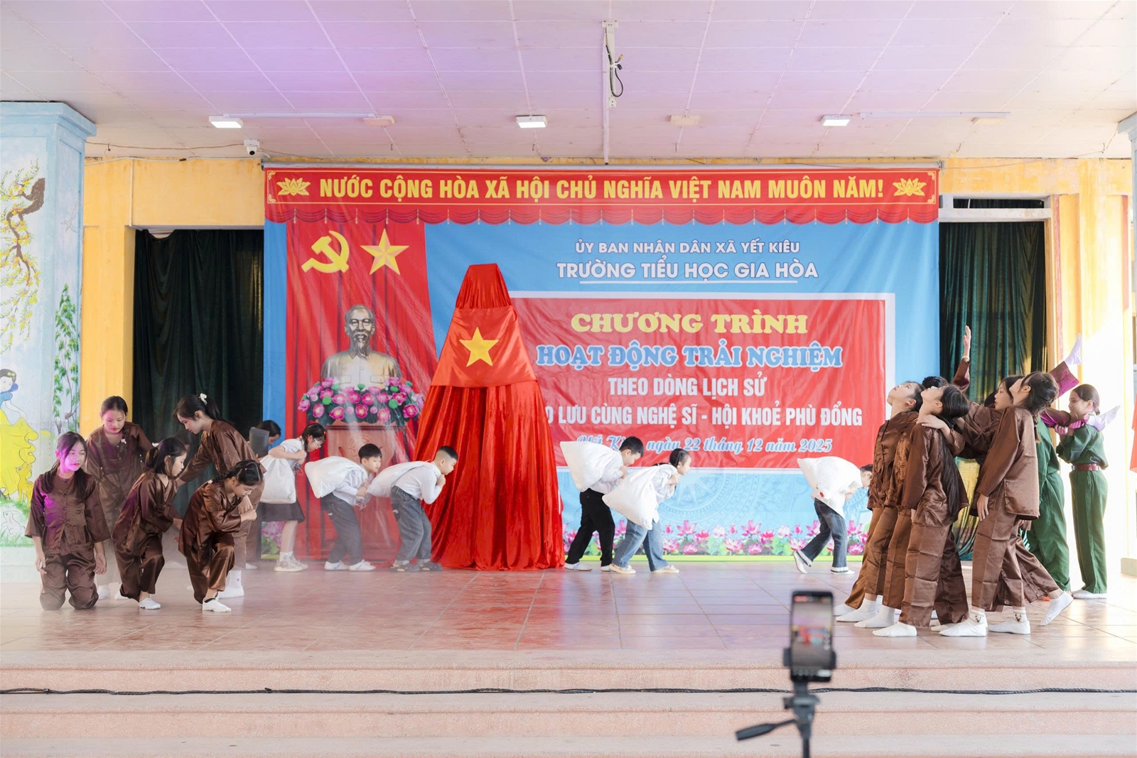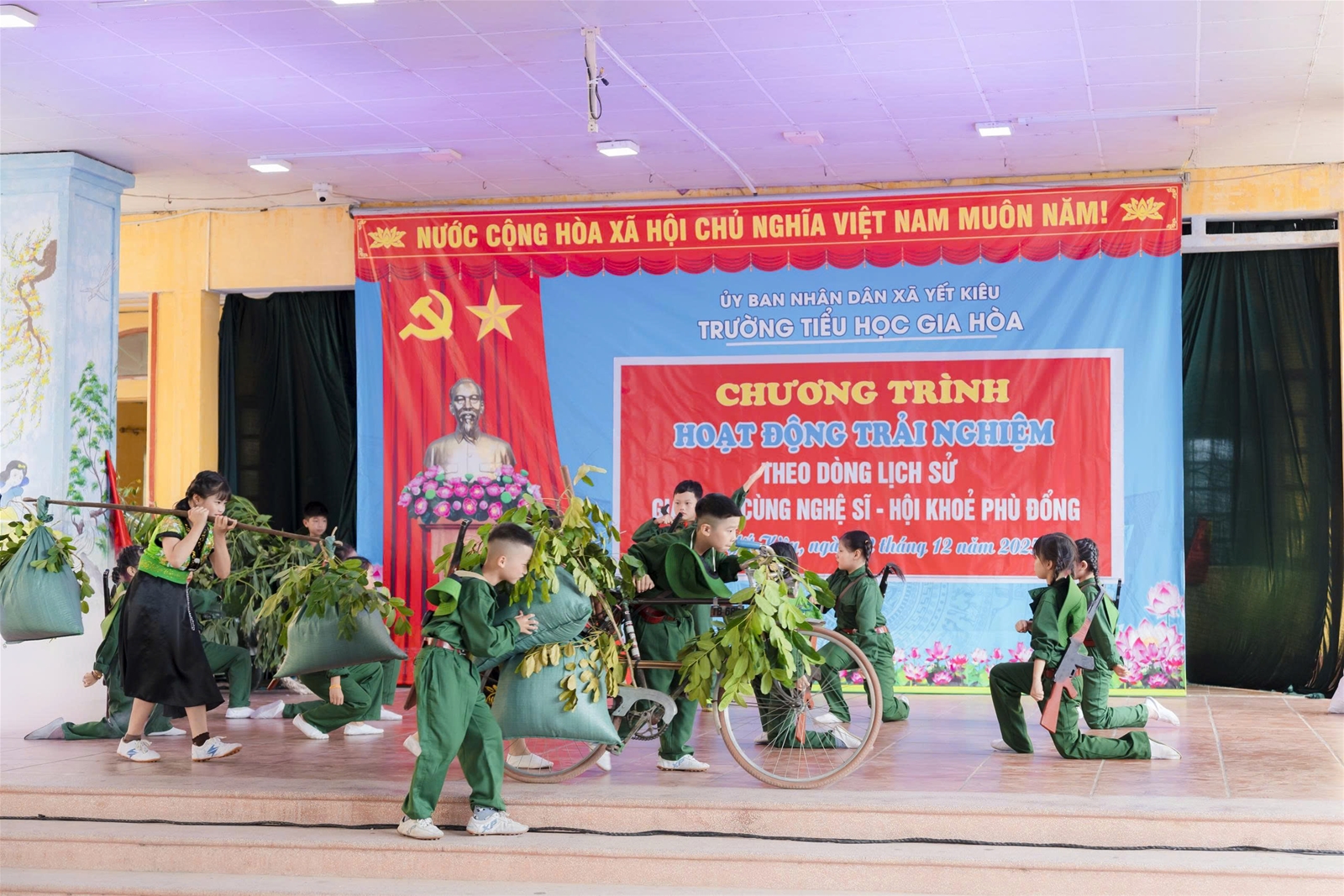 Sáng ngày 22/12/2025, Trường Tiểu học Gia Hòa, xã Yết Kiêu, thành phố Hải Phòng tổ chức chương trình Hoạt động trải nghiệm với chủ đề “Theo dòng lịch sử – Giao lưu cùng nghệ sĩ – Hội khỏe Phù Đổng”, nhằm thiết thực chào mừng kỷ niệm Ngày thành lập Quân đội Nhân dân Việt Nam 22/12 và giáo dục truyền thống yêu nước cho học sinh.