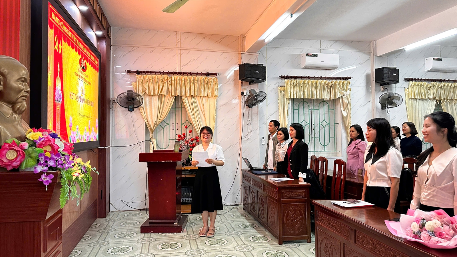 Buổi lễ diễn ra trong không khí trang nghiêm, có sự tham dự của toàn thể đảng viên trong Chi bộ. Tại buổi lễ, đồng chí Lương Thị Hải Hà – Bí thư chi bộ, Hiệu trưởng nhà trường đã công bố và trao Quyết định kết nạp Đảng của cấp có thẩm quyền cho đồng chí Nguyễn Thanh Hương. Trước cờ Tổ quốc, cờ Đảng và chân dung Chủ tịch Hồ Chí Minh, đồng chí Nguyễn Thanh Hương đã tuyên thệ, thể hiện quyết tâm tuyệt đối trung thành với mục tiêu, lý tưởng của Đảng, nghiêm túc thực hiện nhiệm vụ của người đảng viên, không ngừng rèn luyện, phấn đấu và hoàn thành tốt mọi nhiệm vụ được giao.