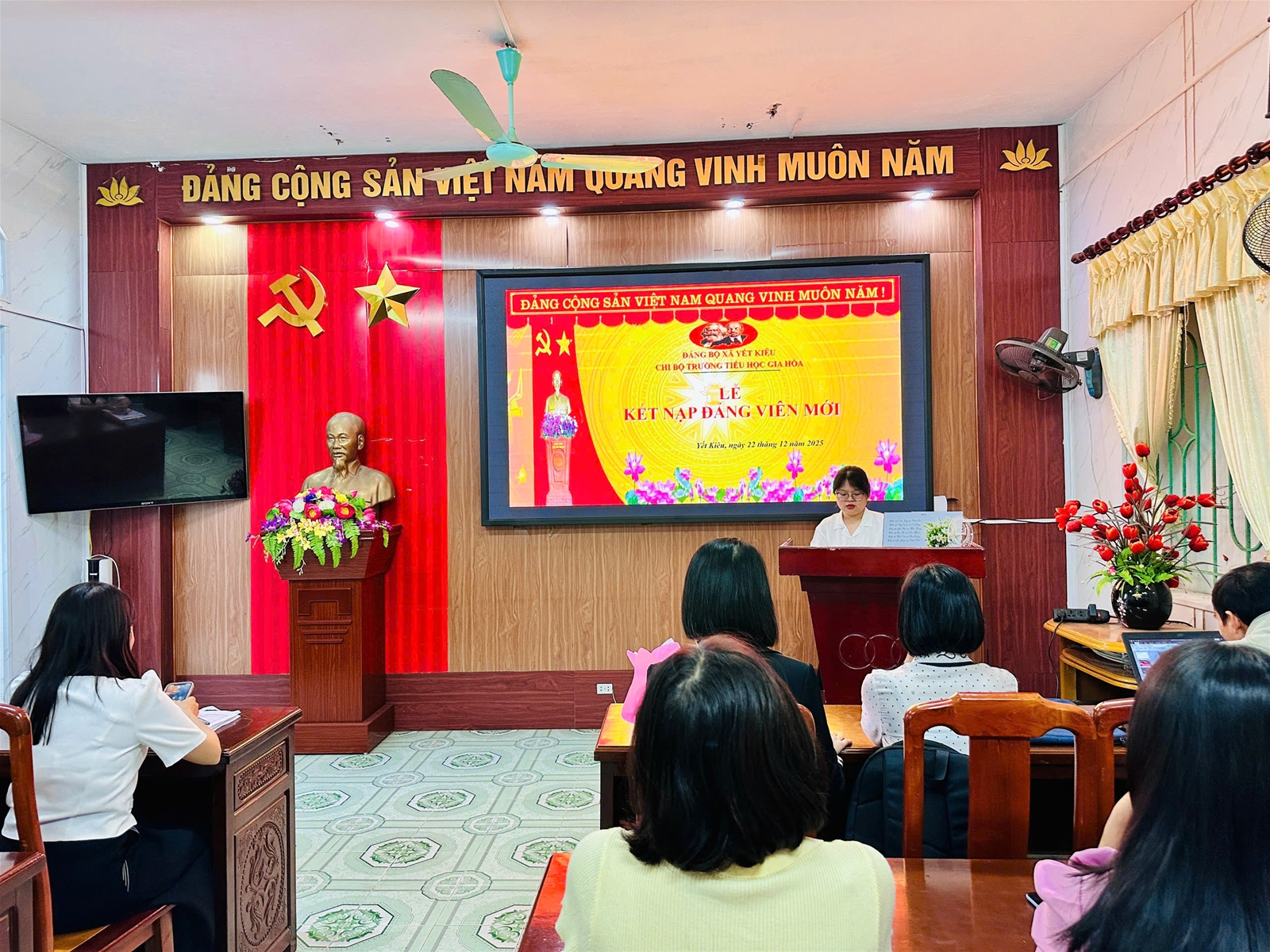 Chiều ngày 22/12/2025, Chi bộ Trường Tiểu học Gia Hòa đã long trọng tổ chức Lễ kết nạp Đảng viên mới cho quần chúng ưu tú Nguyễn Thanh Hương, theo đúng trình tự, thủ tục quy định của Điều lệ Đảng.