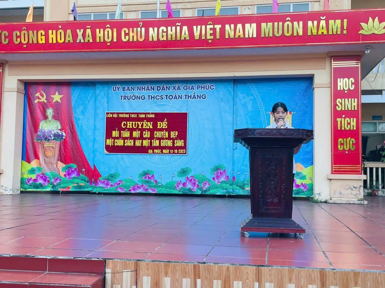 Chương trình “Mỗi tuần một câu chuyện đẹp, một cuốn sách hay” là hoạt động ý nghĩa nhằm khơi dậy tinh thần học tập, rèn luyện và tình yêu đọc sách trong học sinh. Mỗi tuần, Liên đội trường THCS Toàn Thắng sẽ giới thiệu một câu chuyện đẹp về tình người, lòng nhân ái, sự trung thực hay tinh thần vượt khó để lan tỏa những giá trị sống tốt đẹp.