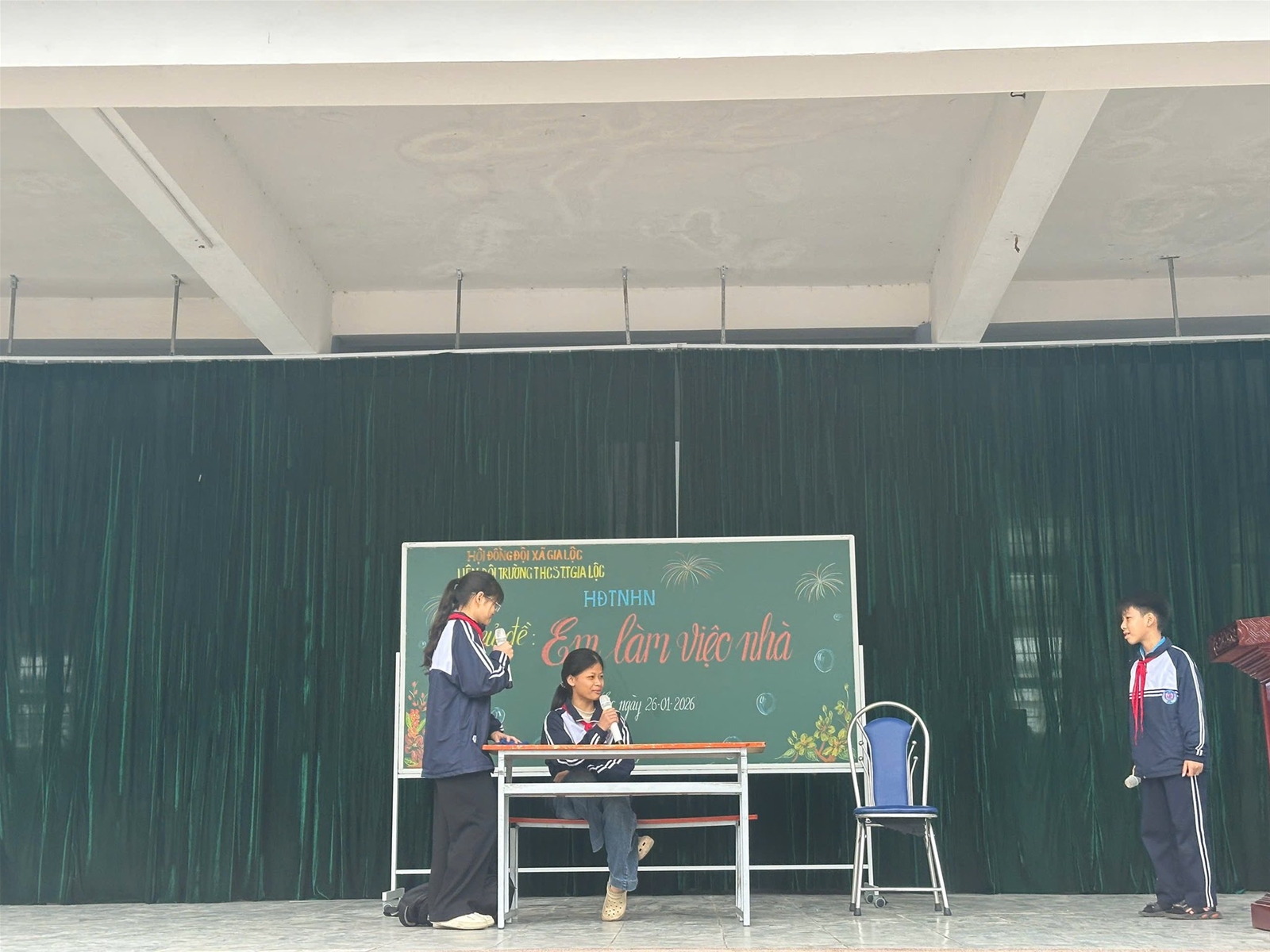 Sáng ngày 26/01/2026, Liên đội Trường THCS Thị trấn Gia Lộc đã tổ chức hoạt động trải nghiệm, hướng nghiệp với chủ đề “Em làm việc nhà” của các em đội viên khối lớp 6.
