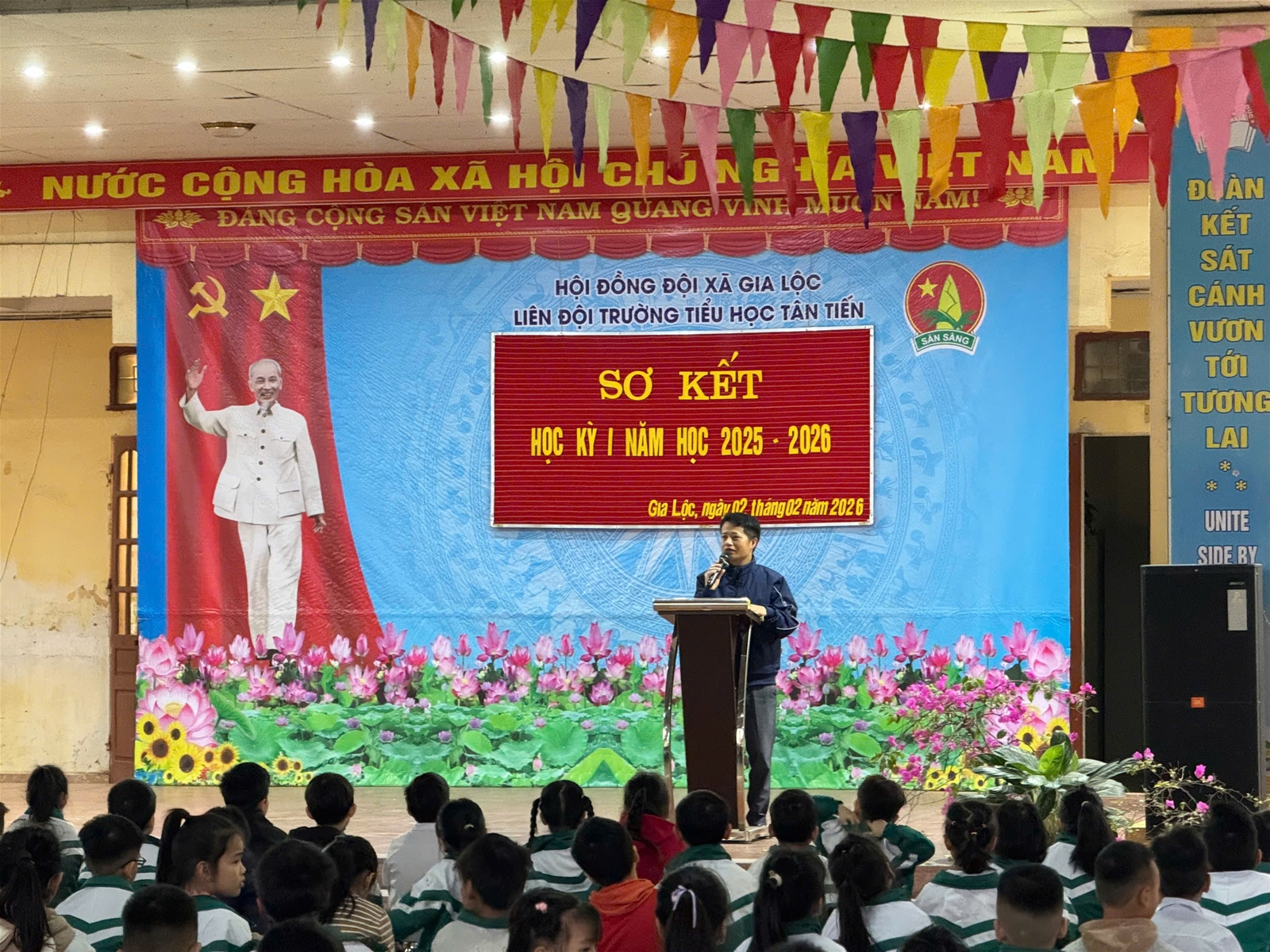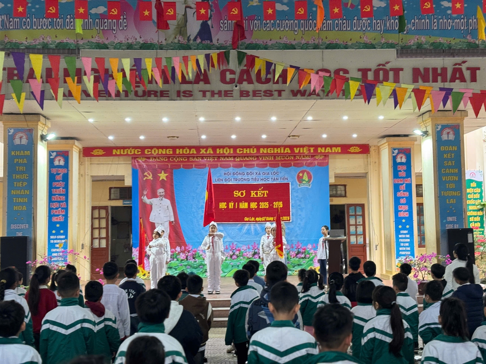 Thực hiện Kế hoạch nhiệm vụ năm học, Kế hoạch giáo dục nhà trường, Chương trình giáo dục học kì I năm học 2025-2026 đã hoàn thành đúng thời gian. Để đánh giá kết quả thực hiện nhiệm vụ năm học trong học kì I, sáng ngày 02 tháng 02 năm 2026, Trường Tiểu học Tân Tiến đã tổ chức Sơ kết với toàn thể CBGV, NV và các em học sinh.