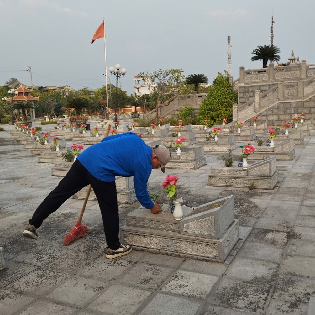 Nghĩa trang liệt sĩ là nơi yên nghỉ của những người đã hiến dâng trọn đời mình cho sự nghiệp cách mạng. Hoạt động dọn vệ sinh, chỉnh trang khuôn viên nghĩa trang không chỉ mang ý nghĩa tâm linh sâu sắc mà còn là việc làm thiết thực, giáo dục đoàn viên, thanh niên truyền thống “Uống nước nhớ nguồn”, “Ăn quả nhớ người trồng cây” – một giá trị đạo lý tốt đẹp của dân tộc Việt Nam.