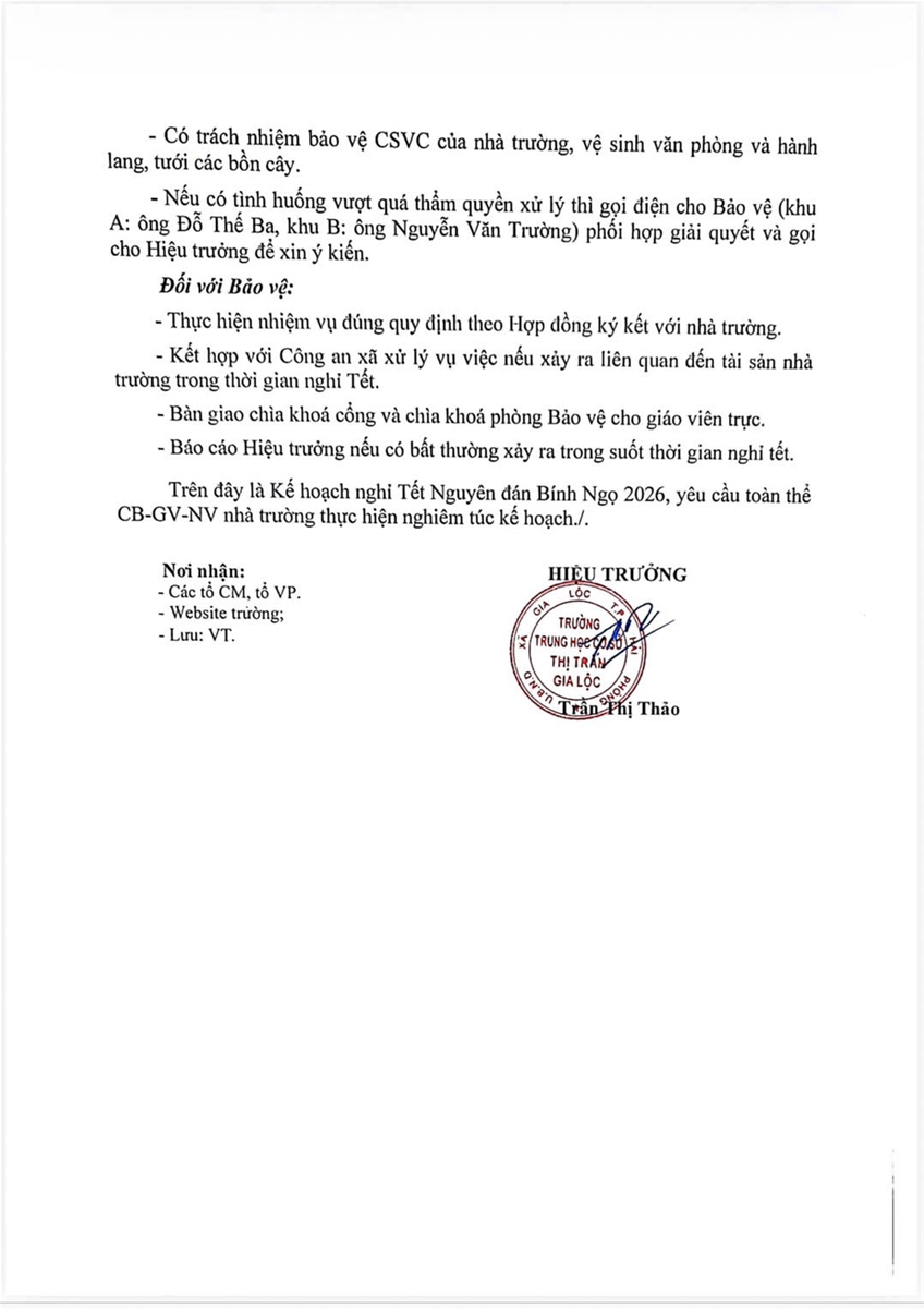 (THCS thị trấn Gia Lộc) KẾ HOẠCH NGHỈ TẾT BÍNH NGỌ NĂM 2026 ...