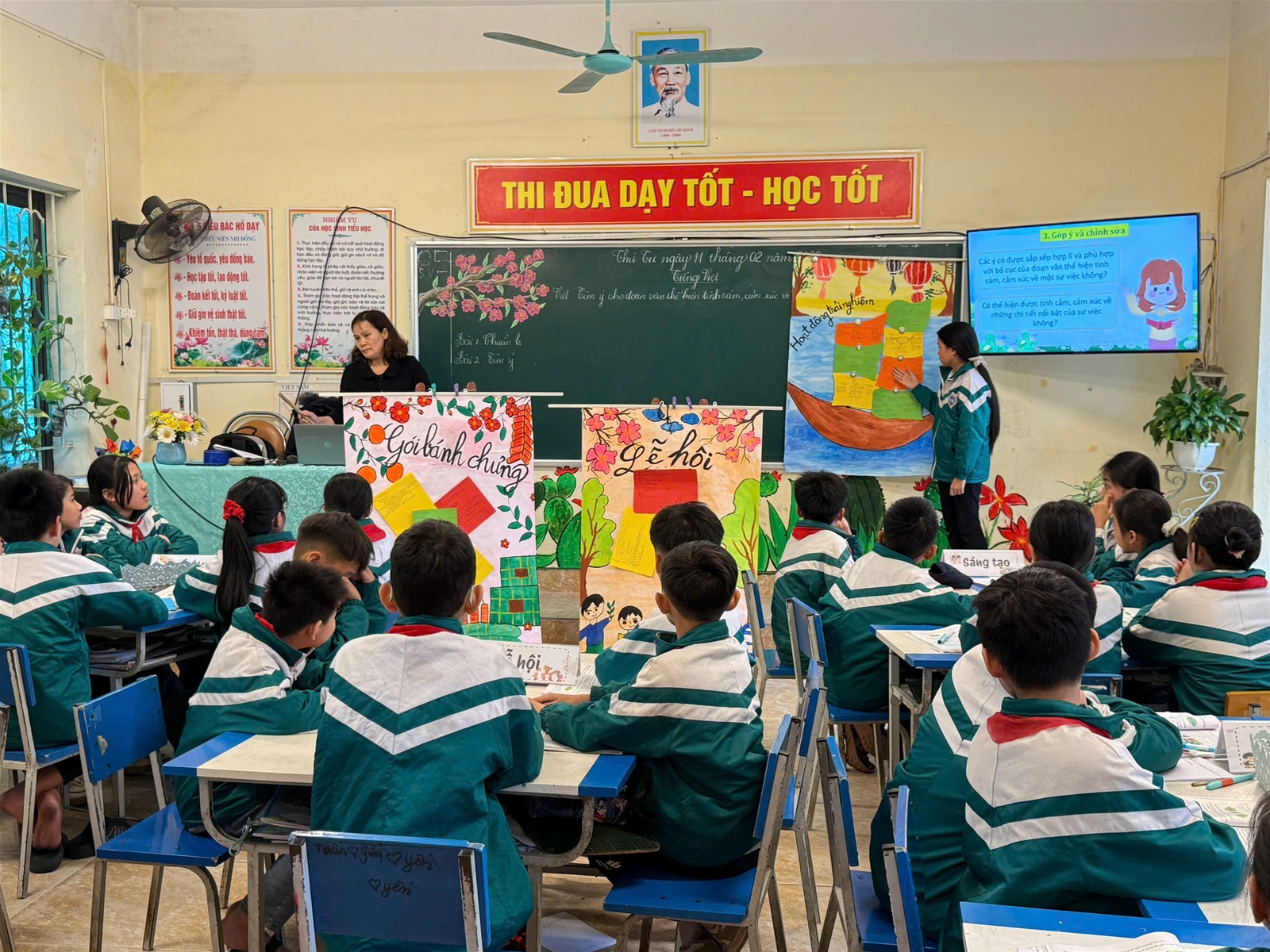 Học sinh được tham gia nhiều hoạt động học tập tích cực như: xây dựng sơ đồ ý tưởng bằng công cụ số, thảo luận nhóm, chia sẻ trải nghiệm cá nhân, trình bày kết quả trước lớp. Qua đó, các em vừa nắm chắc kiến thức môn Tiếng Việt, vừa phát triển năng lực giao tiếp, hợp tác, bộc lộ cảm xúc và sử dụng công nghệ một cách an toàn, sáng tạo. Tiết dạy minh họa thể hiện rõ tinh thần đổi mới, sự chủ động trong chuyên môn của giáo viên khi đưa công nghệ số vào lớp học, giúp bài học trở nên sinh động, gần gũi và gắn với thực tiễn.