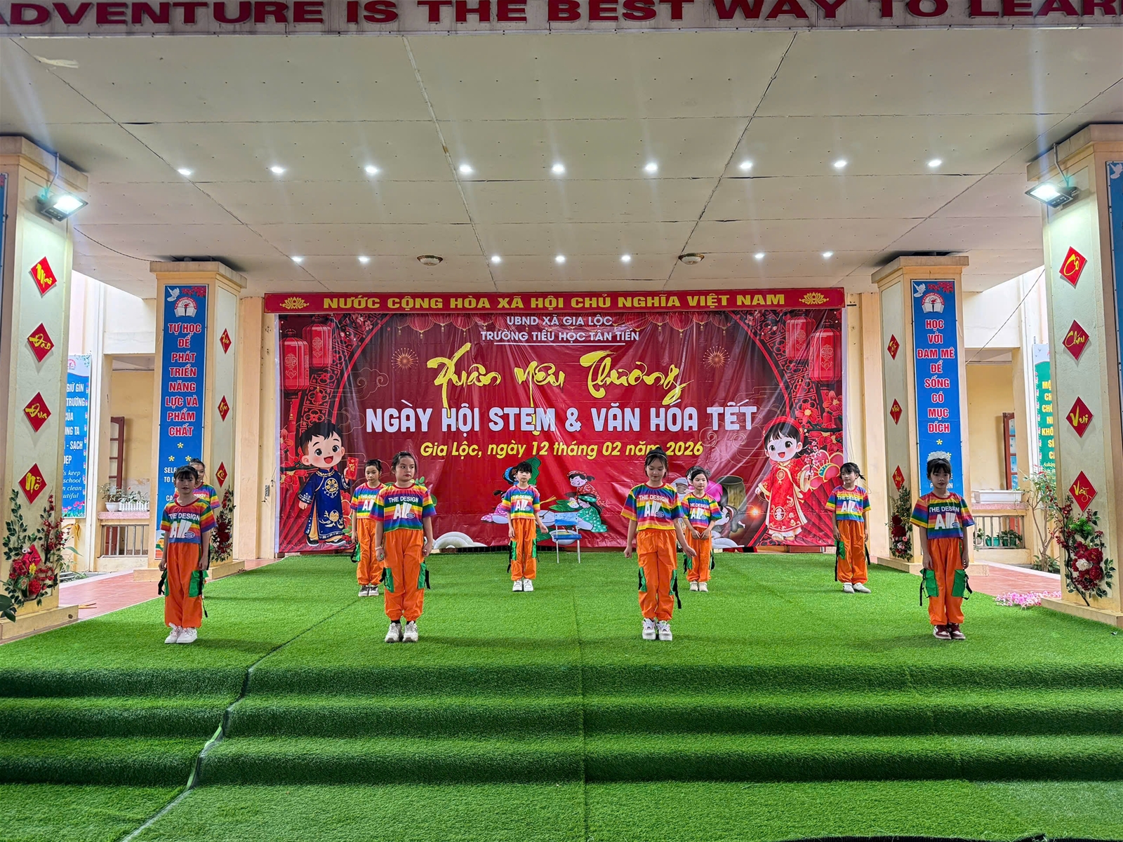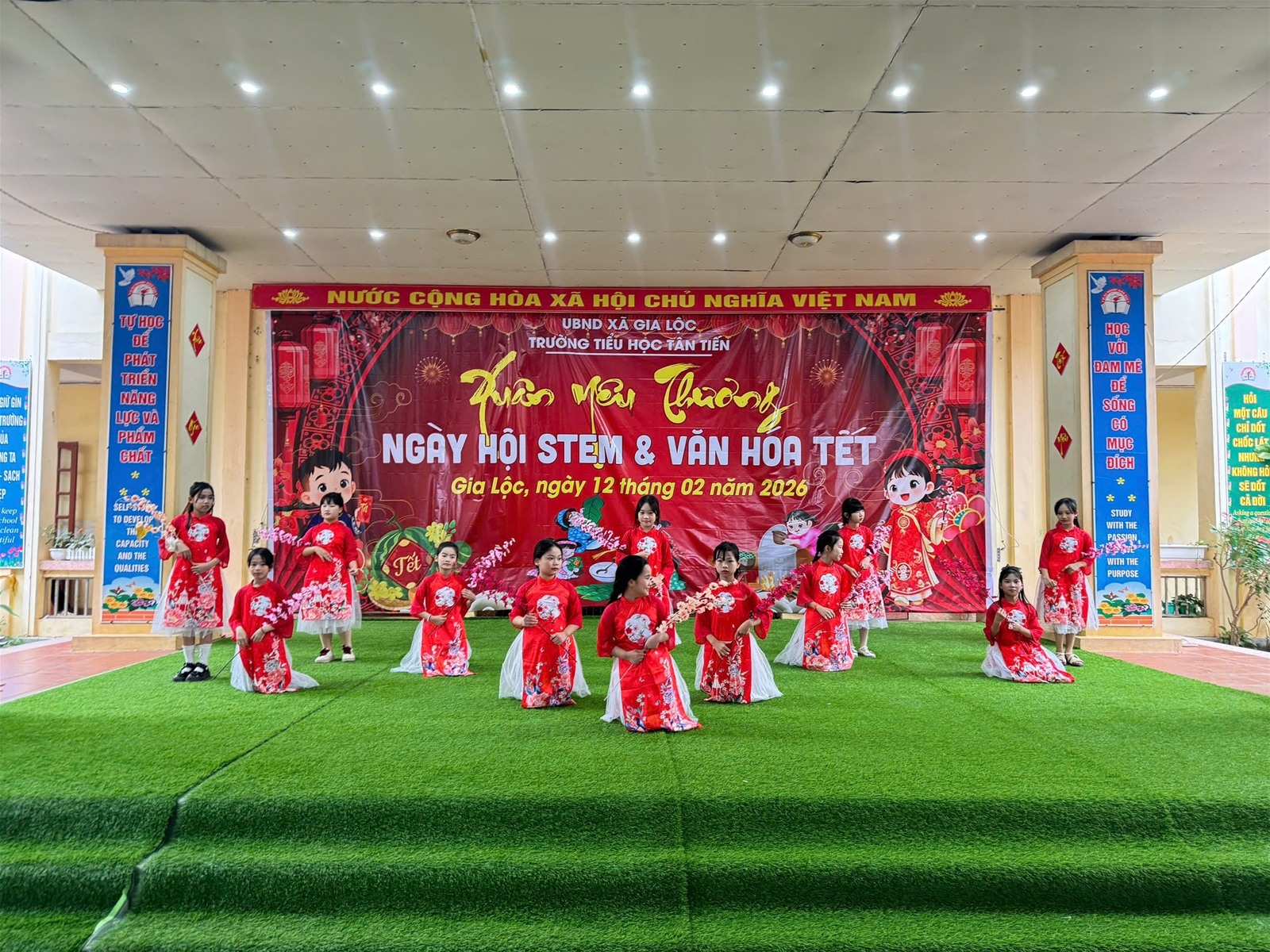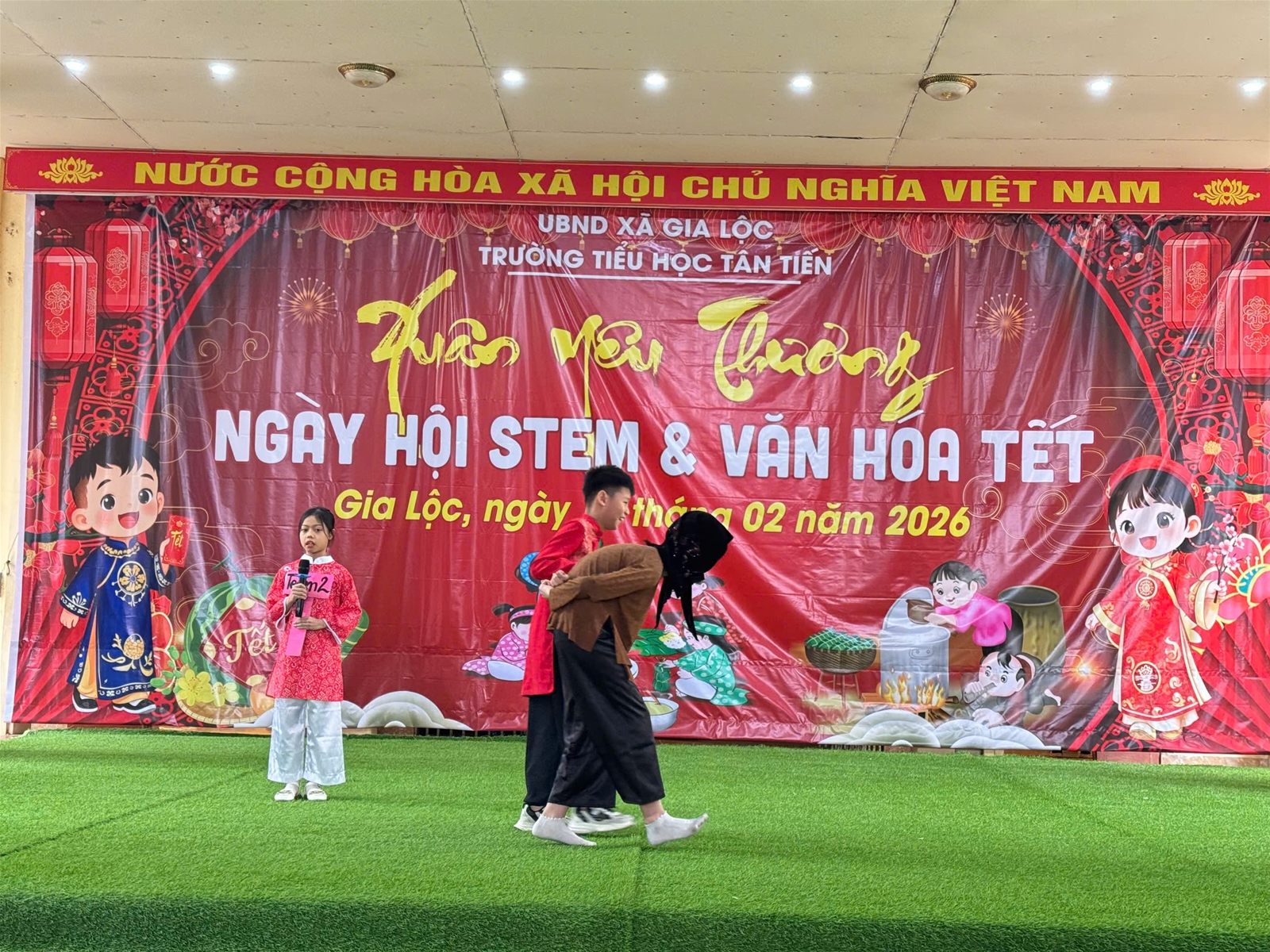 Trong không khí rộn ràng chào đón mùa xuân mới. Chiều ngày 12 tháng 2 năm 2026, Trường Tiểu học Tân Tiến đã tổ chức thành công hoạt động trải nghiệm “Xuân yêu thương – Ngày hội STEM & Văn hóa Tết năm 2026” với nhiều nội dung phong phú, ý nghĩa, thu hút đông đảo cán bộ, giáo viên, phụ huynh và học sinh tham gia.
