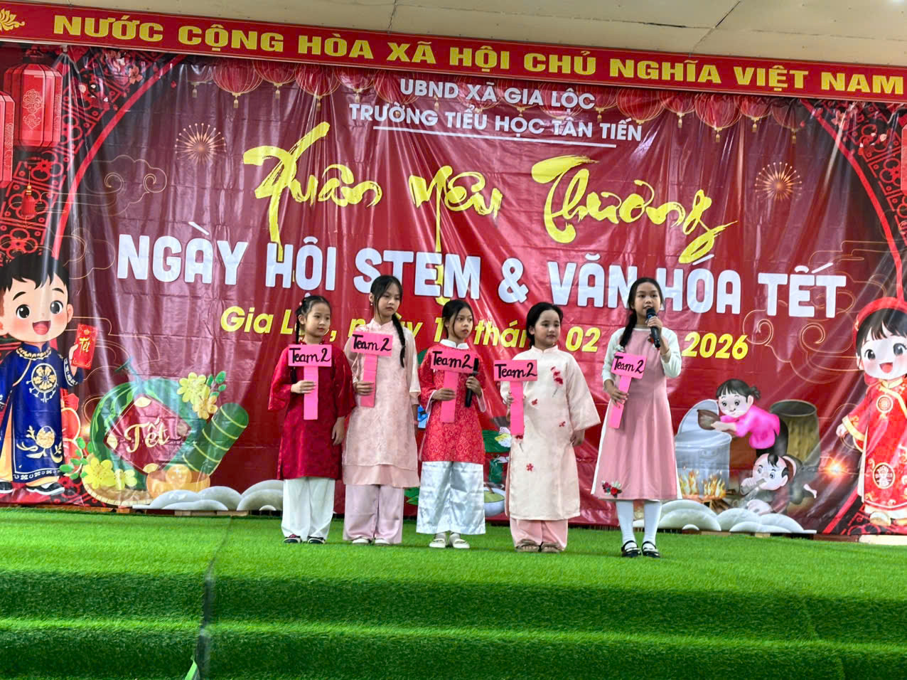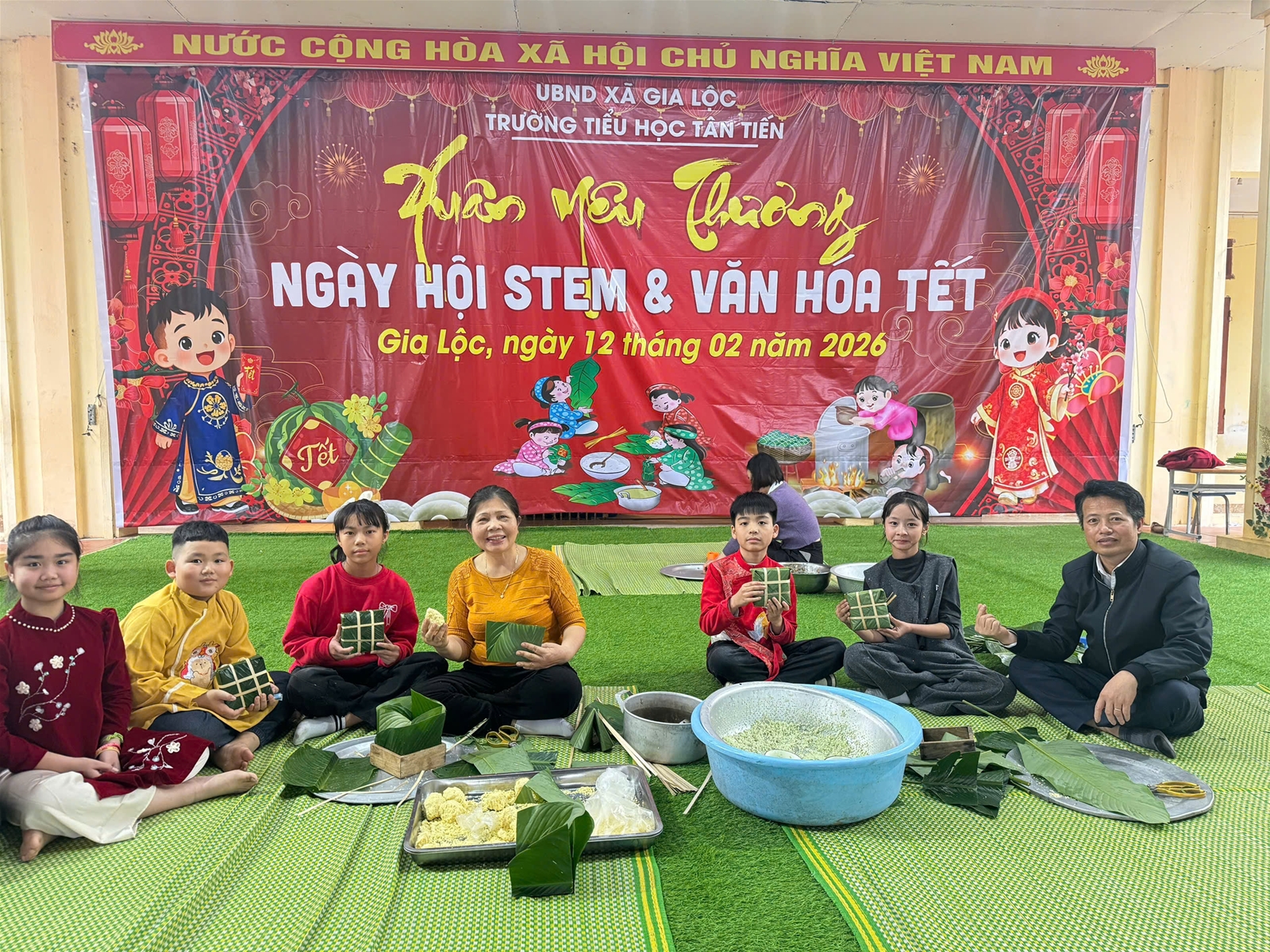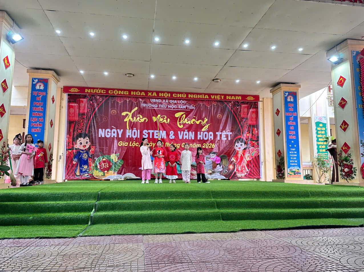Trong không khí rộn ràng chào đón mùa xuân mới. Chiều ngày 12 tháng 2 năm 2026, Trường Tiểu học Tân Tiến đã tổ chức thành công hoạt động trải nghiệm “Xuân yêu thương – Ngày hội STEM & Văn hóa Tết năm 2026” với nhiều nội dung phong phú, ý nghĩa, thu hút đông đảo cán bộ, giáo viên, phụ huynh và học sinh tham gia.