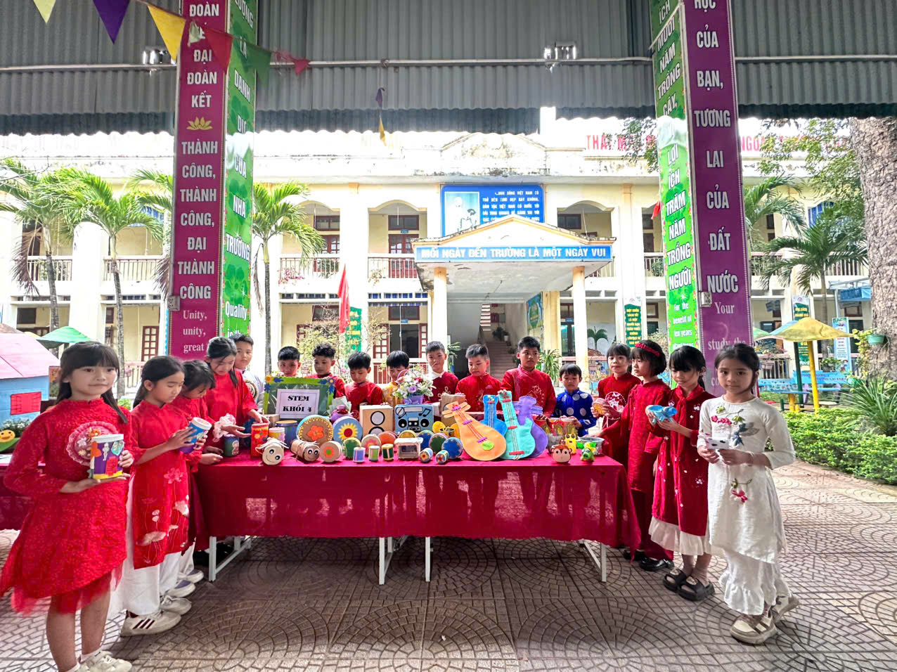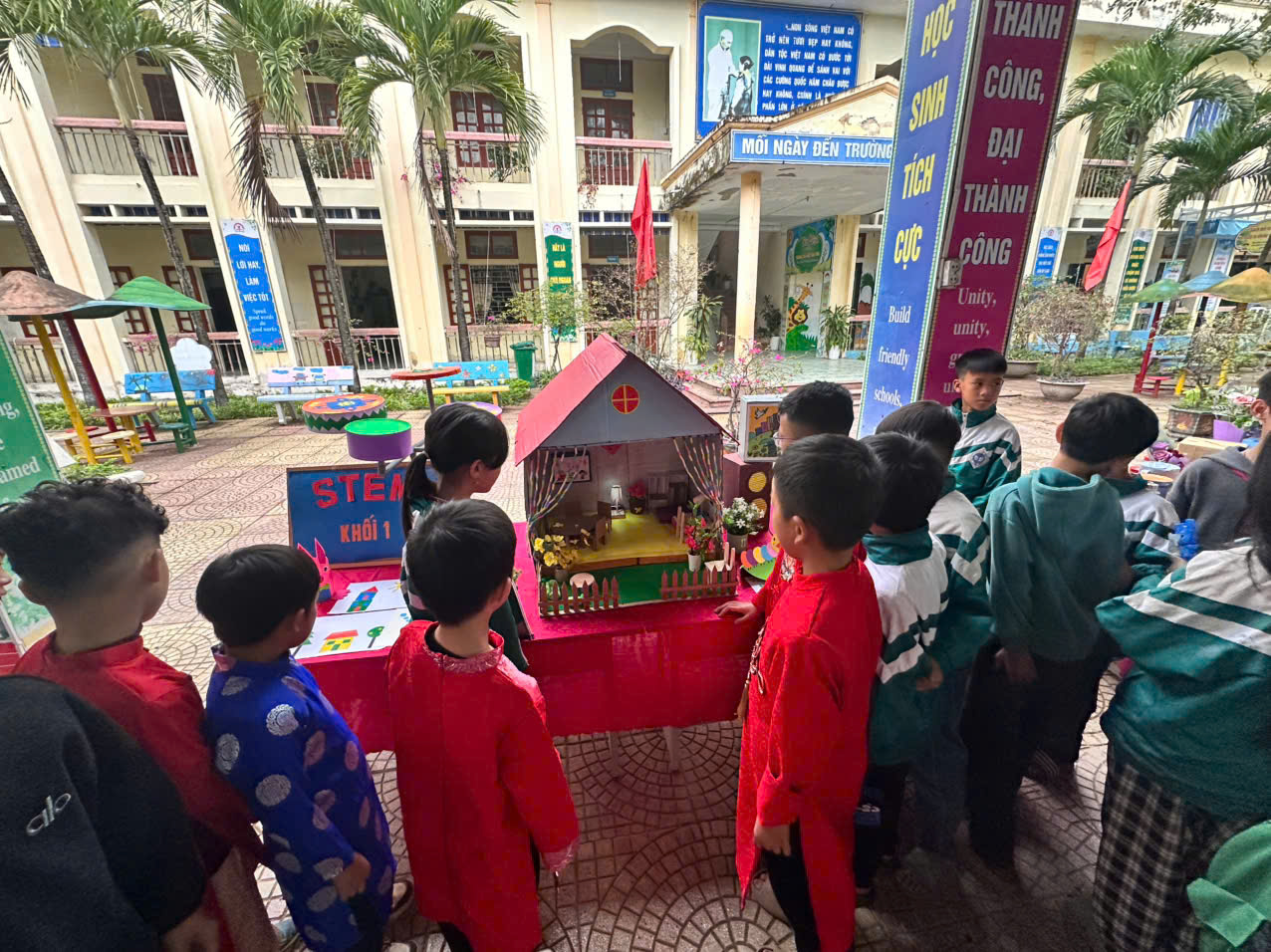Tại chương trình, các em học sinh hào hứng tham gia khu trưng bày sản phẩm STEM với nhiều mô hình sáng tạo, thể hiện sự tìm tòi, nghiên cứu và khả năng vận dụng kiến thức vào thực tiễn. Các sản phẩm phong phú, đa dạng đã cho thấy tinh thần say mê khám phá khoa học, khả năng hợp tác và tư duy sáng tạo của học sinh toàn trường.