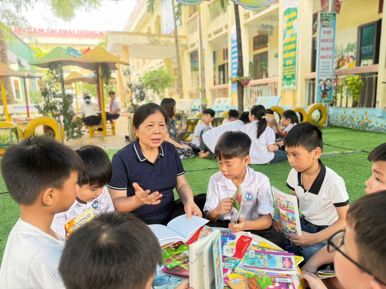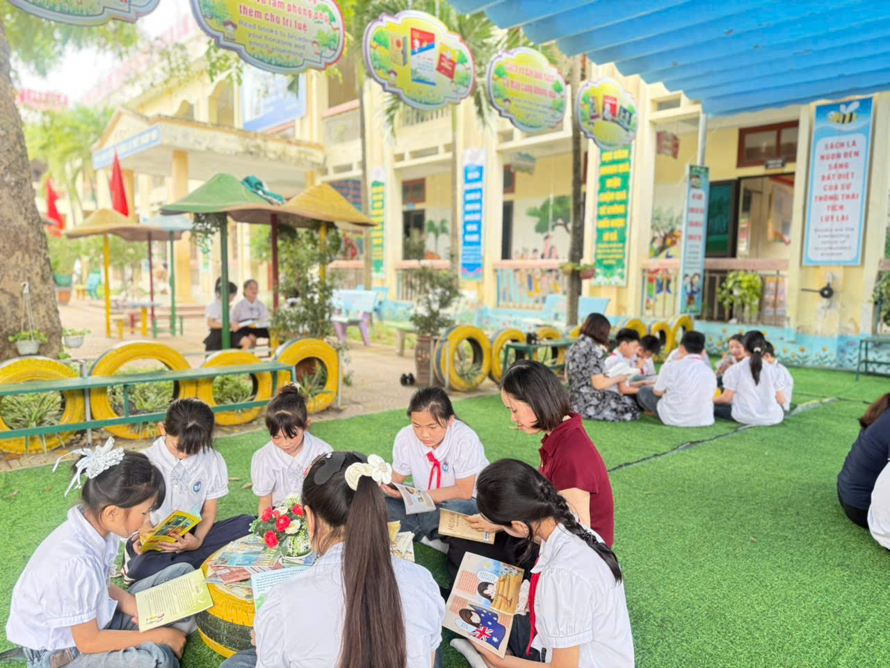 Đặc biệt, không gian thư viện ngoài trời được bố trí thân thiện, hấp dẫn đã trở thành điểm đến lý tưởng cho học sinh. Hình ảnh các em say sưa đọc sách dưới bóng cây xanh mát đã góp phần lan tỏa mạnh mẽ vẻ đẹp của văn hóa đọc trong nhà trường.